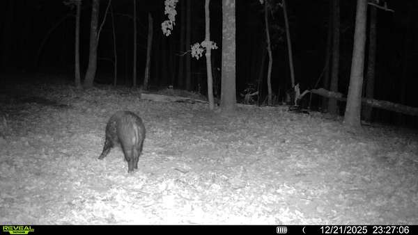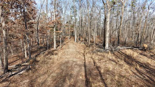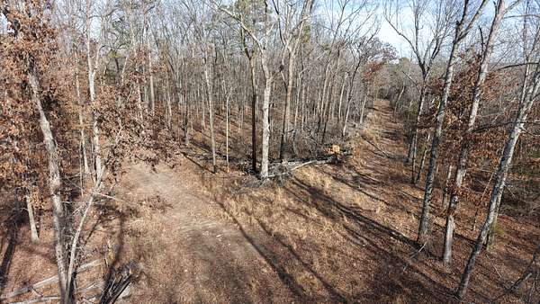 The land features a diverse mix of wooded terrain and open clearings with over three miles of established trails, making it ideal for hunting, hiking, and trail riding.