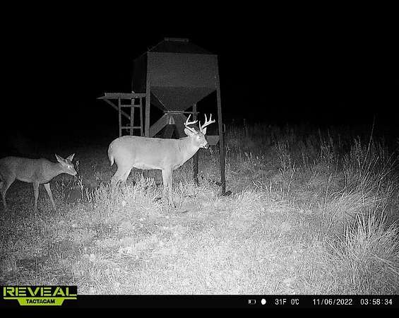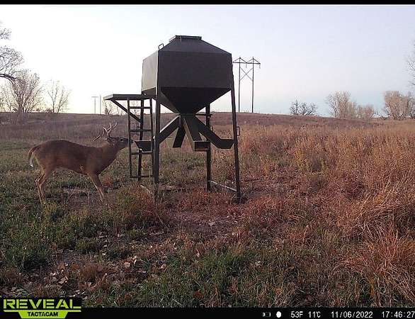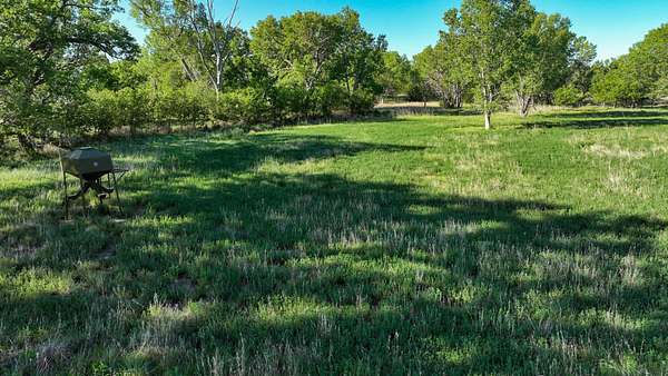 At the heart of the property lies a strategically placed 1-acre alfalfa food plot, which has become a magnet for deer activity. This offering is outfitted with a premium All Seasons Feeders tower blind, multiple ladder tree stand sets, and a 2,000-pound bulk steel gravity feeder, providing a turnkey setup for hunters seeking immediate success. Surrounding this are approximately 106 acres of native grasses, and mature timber that create excellent bedding areas and natural travel corridors for deer and other game species.