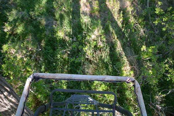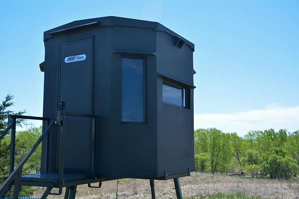 ASF tower blind, Texas Wildlife Supply 2000# steel feeder, and multiple tree stands in place