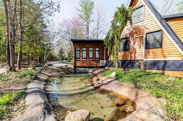 SECLUDED. EXPANSIVE. REFINED. Have you ever imagined owning your own quarry? How about TWO? This remarkable property also features a home that has just undergone a complete renovation. Welcome to this extraordinary estate offering exceptional privacy on 14.25 acres near Lake Monroe, situated along the Lawrence/Monroe County line. A private circular drive winds through evergreens, leading you to a beautifully updated FOUR bedroom, THREE bathroom home tucked into a peaceful clearing. From the moment you arrive, the thoughtfully designed landscaping and inviting outdoor living spaces set the tone for relaxed country living. Inside, you’ll find a spacious living room filled with natural light from brand-new windows, complemented by hardwood flooring throughout for added warmth and character. The main level features two bedrooms, a full bathroom, and a dining area with scenic views. The primary suite is positioned for privacy and includes its own en-suite bathroom. The kitchen is both functional and stylish, offering ample cabinet and countertop space along with access to an additional outdoor gathering area. The lower level expands the living space with a dining area that opens to the backyard and firepit, along with a versatile room ideal for a family or entertainment space, a full bathroom, and direct access to the attached two-car garage. Upstairs, a cozy loft and an additional bedroom provide a quiet retreat. Outdoor amenities are equally impressive, including a large deck, a concrete pad with two 50-amp outlets ready for a hot tub, and a picnic area perfect for entertaining or stargazing. A 28' x 47' detached outbuilding with concrete flooring offers additional space for storage, hobbies, or equipment. Adding to its truly unique appeal, the property features two stunning quarries stocked with fish, creating a private setting for swimming, relaxing, and enjoying the natural beauty of Southern Indiana. Utilities are provided by the Utilities District of Western Indiana and N. Lawrence Water. This rare property combines privacy, natural beauty, and modern updates into one exceptional opportunity.