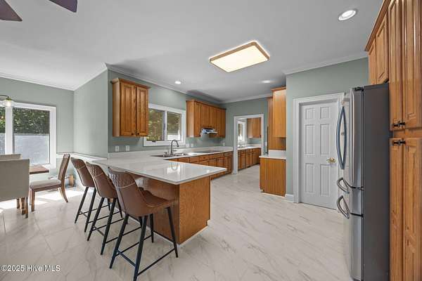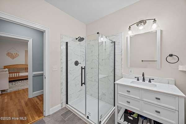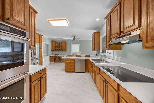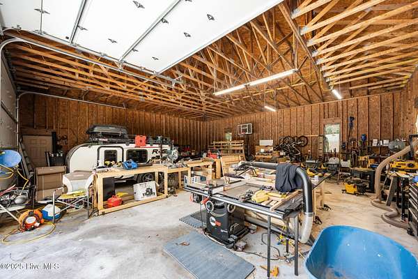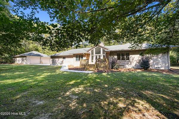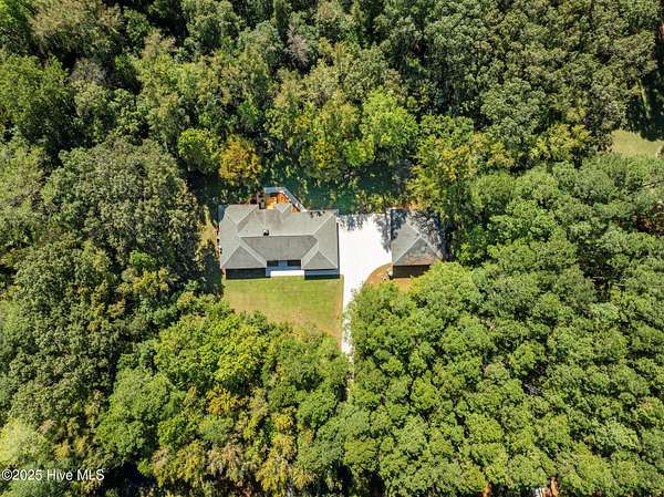 Just outside Greenville's city limits sits a welcoming family home in your very own forest. just 20 minutes from the medical district and 15 minutes from downtown Greenville and ECU. This updated single level residence, offers over 3,200 square feet of sophisticated comfort surrounded by nature's tranquility. Set on a 5,1 acre wooded lot on a private road, this property delivers the perfect balance of privacy and convenience. Inside, rich red oak hardwood floors flow throughout the main living spaces, complementing a thoughtfully renovated interior. The chef's kitchen impresses with new quartz countertops, white tile flooring, and a suite of new premium KitchenAid appliances, including a double oven, dishwasher, and cooktop. The home features a large bonus room and expansive bedrooms, including a primary suite so big it could be considered another living space, complete with dual walk-in closets and two full ensuite baths. The inviting family room centers around a real wood-burning fireplace, with floor to ceiling windows looking over your brand new deck and serene backyard. Every detail reflects quality and care, with bathroom renovations, a new heat pump (2022) replaced ductwork (2024) and a new concrete driveway enhancing both comfort and efficiency. The encapsulated crawl space with dehumidifier and conditioned storage room add to the home's superior functionality. Also, this custom built home is wired for a backup generator for ultimate peace of mind. To go along with it's attached two car garage and completing the property perfectly is a massive 1600 sf detached and powered garage and workshop, featuring modified doors to accommodate taller boats/campers--or any other toys a fisherman, carpenter or outdoorsman would find ideal. This exceptional estate harmonizes timeless craftsmanship, modern amenities, and an oasis from the bustle without being far from the conveniences.