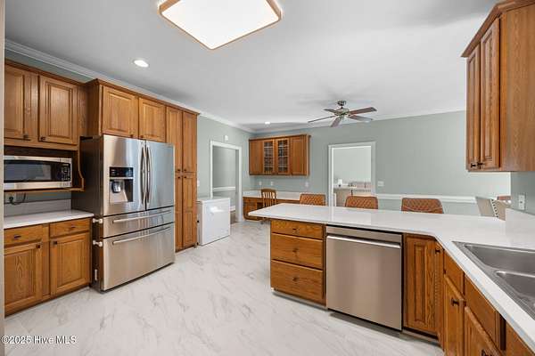 - Built-In Microwave, Dishwasher, Disposal, Double Oven, Electric Cooktop, Refrigerator