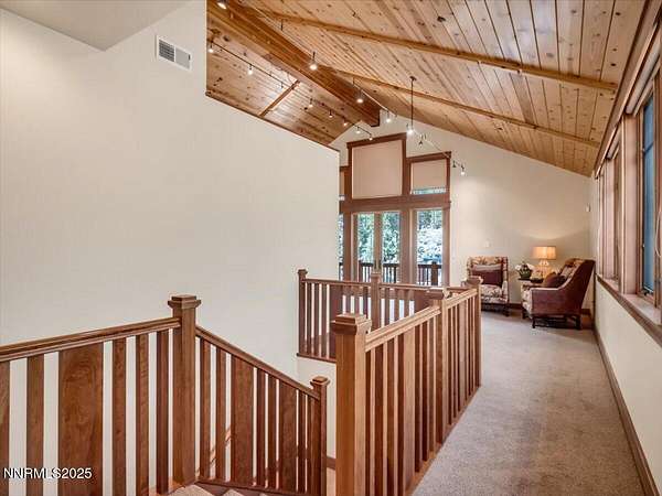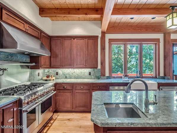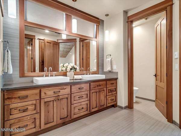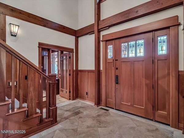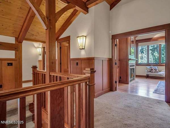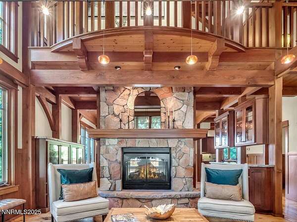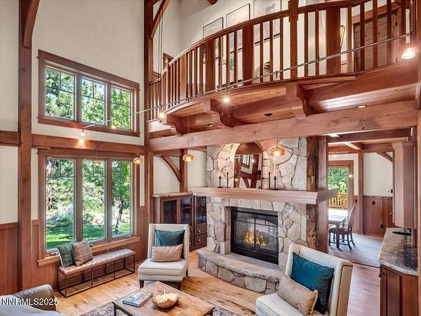 Set among towering pines in the prestigious gated enclave of Jobs Peak Ranch, this nearly 7,000 square foot craftsman estate is a distinguished mountain retreat that blends timeless design with modern comfort. Nestled high on the eastern slopes of the Sierra Nevada, it commands sweeping panoramic views of the surrounding peaks-a serene and majestic backdrop that few properties can offer. Situated on three private acres, the residence is approached by a stately circular drive, setting a tone of elegance and arrival. Inside, soaring ceilings and walls of glass showcase the grandeur of the Sierra, while rich woodwork and fine stone finishes create a warm, inviting ambiance. Every room is bathed in natural light, with breathtaking mountain vistas at every turn. Thoughtfully designed for both comfortable living and gracious hosting, the floor plan features four bedrooms, including two primary suites, along with a study, den, and a private apartment complete with its own kitchen and entrance. Dual living areas and expansive decks allow for effortless entertaining, whether hosting intimate gatherings or welcoming extended family. From the gourmet kitchen to the wine cellar and inviting recreation spaces, every detail reflects craftsmanship of the highest caliber. The location offers the best of Northern Nevada's sought-after lifestyle. Within minutes, you can enjoy the crystal-clear waters of Lake Tahoe, world-class skiing, fine dining, and premier entertainment. Reno-Tahoe International Airport is just 45 minutes away, ensuring ease of travel while maintaining the tranquility of a private mountain estate. Nevada's favorable tax environment further enhances the appeal for discerning buyers. To recreate a residence of this scale, quality, and custom artistry today would approach five million dollars-a testament to the care and craftsmanship invested in every detail. This is not merely a home; it is a lasting legacy, an estate that offers rare value, timeless elegance, and a lifestyle defined by peace, privacy, and prestige. Schedule your private tour today and discover why Jobs Peak Ranch is considered the crown jewel of Sierra mountain living.