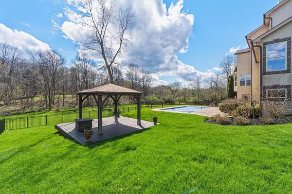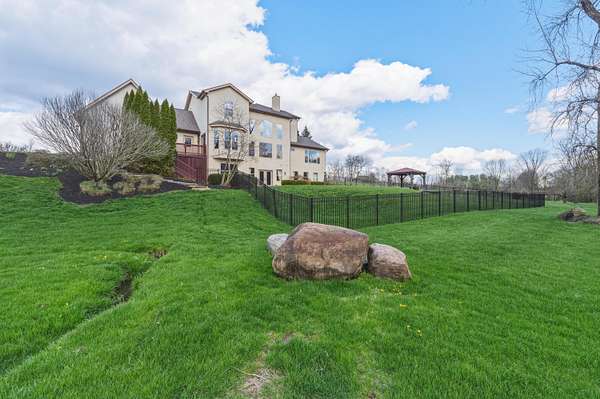 Ready for more space, privacy, and a home that truly fits this next chapter of your life? Welcome to 123 Hidden Hills Drive--where luxury meets peaceful seclusion on 3.35 private acres, just minutes from Columbus and the rapidly growing Intel corridor. This custom, Italian-inspired estate offers over 5,400 square feet designed for both everyday living and effortless entertaining. From the moment you arrive, the home's manicured setting and estate presence set the tone. Inside, a light-filled layout showcases newly refinished hardwood floors, custom woodwork, and elegant architectural details. The kitchen is the heart of the home--featuring granite countertops, abundant cabinetry, and a sunlit breakfast nook overlooking your private backyard. Whether it's quiet mornings or hosting gatherings, this space was designed to bring people together. The great room offers a warm, inviting space with custom built-ins and a striking fireplace. On the main floor, the primary suite provides a true retreat with a spa-like bath, heated floors, and a soaking tub--perfect for unwinding, especially during Ohio winters. The finished walkout basement expands your living space with a wet bar, full bath, fitness area, and large windows that keep it bright and welcoming--ideal for guests or multi-generational living. Step outside and experience what makes this property truly special. Enjoy your private in-ground pool, relax under the cabana, and take in the beauty of your wooded acreage, complete with a stream and frequent wildlife. With no HOA, smart home features, high-speed internet, and major updates including a 2025 roof renewal treatment, pool switched over to paramount UV system in 2025 and updated HVAC, this home offers both comfort and confidence. A rare opportunity to enjoy luxury, land, and convenience--without compromise. Bonus: Home warranty for the first year is included. Propane tank is owned. Large automatic generator.