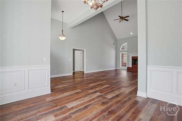 - Breakfast Area, Breakfast Bar, Ceiling Fan(s), Entrance Foyer, Fireplace, Garden Tub/Roman Tub, High Ceilings, Main Level Primary, Pull Down Attic Stairs, Recessed Lighting, Separate Shower, Vaulted Ceiling(s)