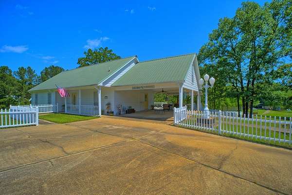 Experience the serenity & refined beauty of this exceptional waterfront estate. Set on approx. 2 pristine acres w/ an expansive amount of WATERFRONT, this property is thoughtfully designed for comfort, connection & effortless entertaining. The open-concept living & kitchen area serves as the welcoming heart of the home, offering an inviting space where gatherings unfold w/ ease. With 3 bedrooms on the main level & 2 additional bedrooms upstairs, the home graciously accommodates family & guests. As an added luxury, the PRIVATE APARTMENT above the two-car garage provides a 6th BEDROOM & 4th FULL BATH--ideal for extended stays or multi-generational living. Outdoor living is truly extraordinary. Enjoy a spacious back deck perfect for dining and lounging, a charming gazebo for shaded relaxation & a peaceful sitting area at the water's edge. The boathouse elevates the experience even further, fully outfitted w/ 3 lifts: pontoon, bass & jet ski, & its own fuel station.