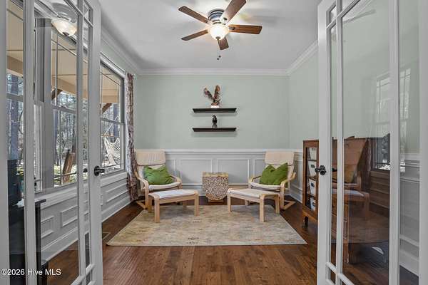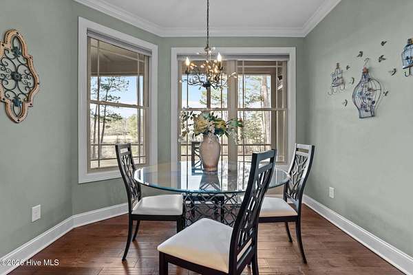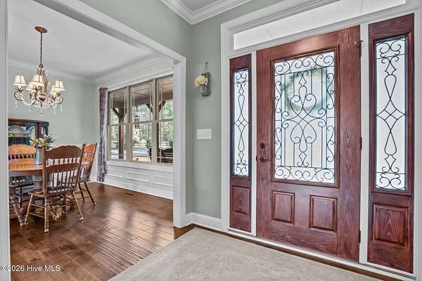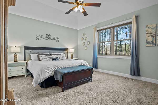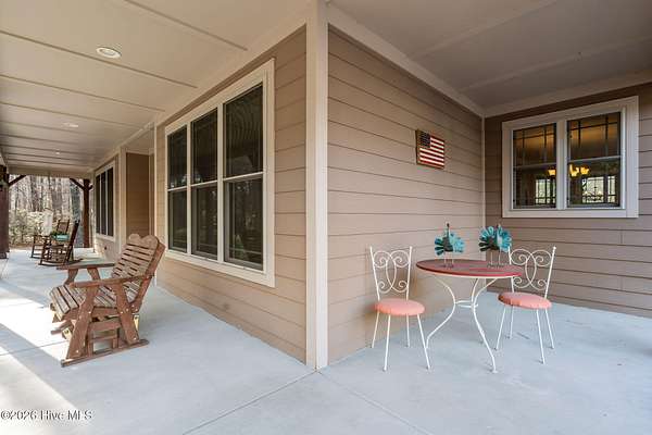 Welcome to paradise! This beautiful custom-built home is perfectly situated on 2.43 acres just outside of Carthage in a quiet subdivision offering a peaceful country feel. This award-winning home, recognized by the Home Builders Association for excellence in its category, features exceptional craftsmanship and fine finishes throughout. From the inviting wrap-around front porch, step into the foyer with views that immediately draw your eyes to the tranquil pond through large living room windows. The main living area boasts gleaming hardwood floors, with a spacious living room centered around a stunning floor-to-ceiling tiled gas log fireplace flanked by built-in cabinetry. The foyer is open to a formal dining room with wainscoting and chair rail trim, mirrored in the office/study with French door entry from the foyer. A beautiful kitchen awaits with granite countertops, custom cabinetry, stainless-steel appliances, island with built-in microwave, and breakfast nook framed by a bay wall of windows. There is also a custom walk-in pantry by the laundry room. The private main-level primary suite is a nice retreat with peaceful pond views and a spa-like en-suite bath with dual granite vanities, jetted garden tub, tiled step-in shower and a walk-in closet with built-ins. A stylish powder room and a unique built-in dog pen with wrought iron gate is just down the hall under the stairway. Upstairs, you'll find a large bonus room, three spacious bedrooms - all with walk-in closets, and two full bathrooms, offering ample room for family, guests, or hobbies. The oversized two-car garage includes a third bay ideal for boat storage or a workshop space. Step out back to enjoy a large, screened porch overlooking the backyard with fire pit and scenic views of your private pond, perfect for relaxing evenings or outdoor gatherings. Just 15 minutes from Pinehurst! Don't miss this one-of-a-kind property where quality meets tranquility!