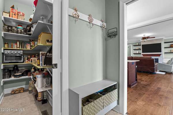 - Blinds/Shades, Ceiling Fan(s), Entrance Foyer, Gas Log, High Ceilings, Master Downstairs, Pantry, Sauna, Tray Ceiling(s), Walk-In Closet(s), Walk-In Shower, Whirlpool