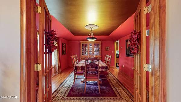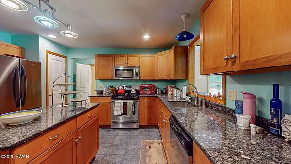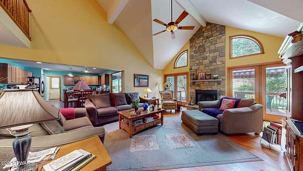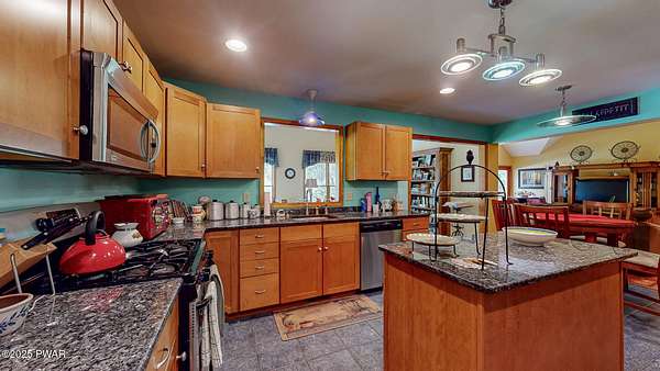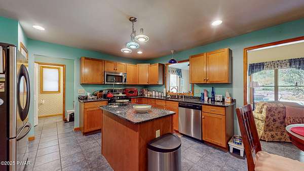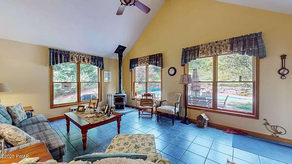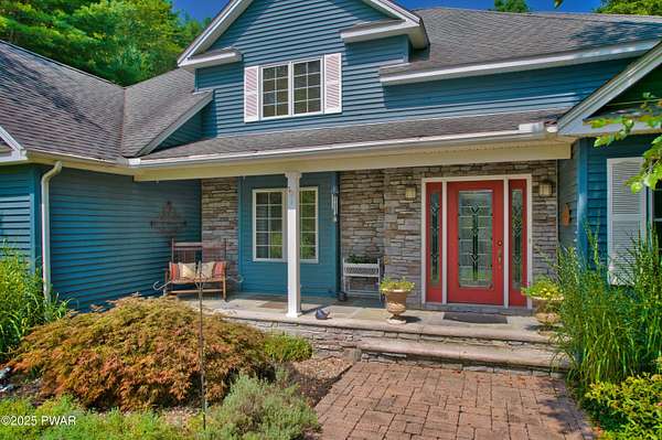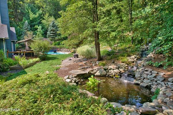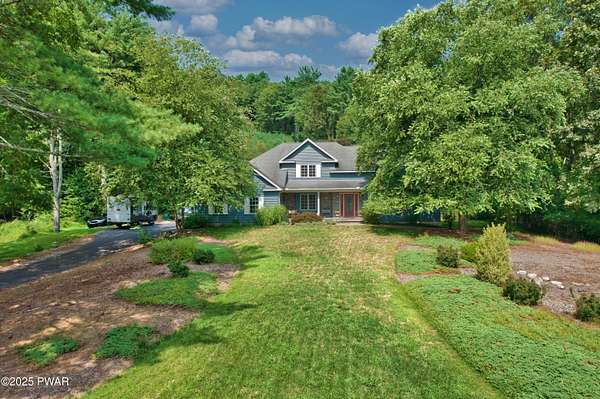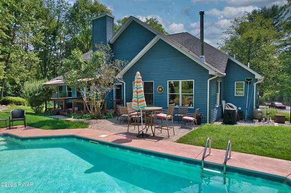 Welcome to this stunning 4-bedroom, 3.5-bathroom home situated on 2.42 acres in a highly sought-after location. Perfectly blending charm, comfort, and functionality, this property offers both privacy and convenience, just a mile from the heart of Milford, PA.Inside, you'll find a first-floor primary suite with ensuite bathroom, additional first floor bedroom with ensuite, and two additional upstairs bedrooms sharing a full bath. The main living area boasts vaulted ceilings and a wood-burning stone fireplace, creating a warm and inviting atmosphere. The spacious kitchen features granite countertops, stainless steel appliances, and plenty of cabinetry, flowing seamlessly into the open living space. A separate dining room and an additional sitting room with a wood-burning stove provide multiple gathering spaces.Convenience meets function with a first-floor laundry room, a large unfinished basement with tall ceilings, and an attic area for extra storage. The two-car garage offers additional practicality.Step outside to enjoy the covered front porch, back deck, and patio overlooking the pool and landscaped pond with a waterfall feature. The fenced-in backyard is perfect for pets, offering a safe and secure area.This home truly has it all--spacious living, thoughtful design, and a serene outdoor retreat--all within minutes of dining, shopping, and cultural attractions in historic Milford, PA.