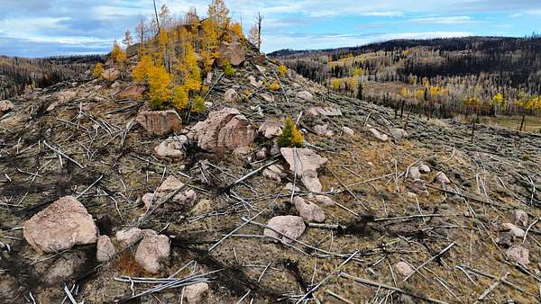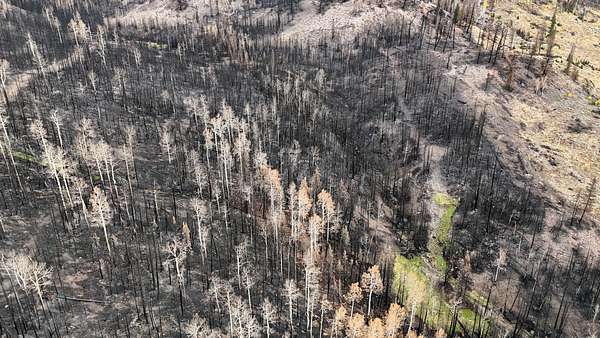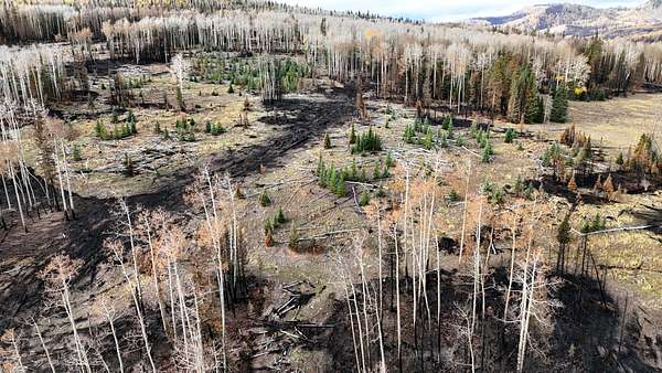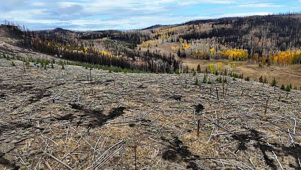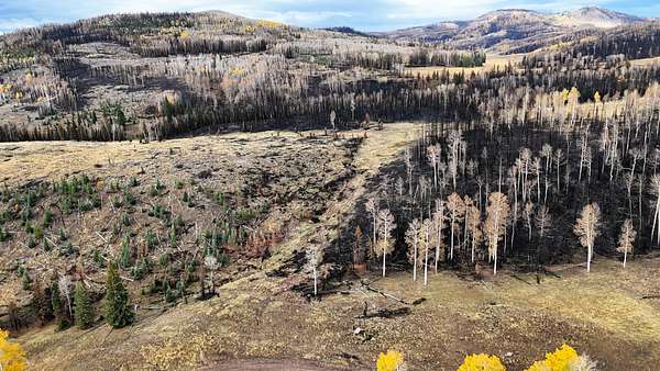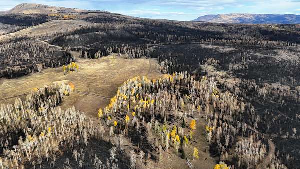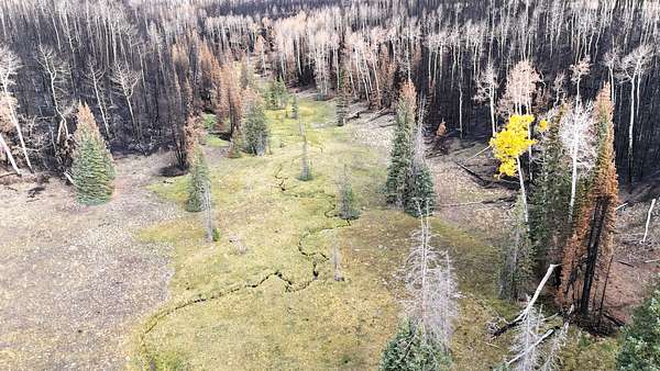 The landscape is characterized by open mountain meadows surrounded by stands of aspen and pine. The current ownership has actively managed the timber and vegetation for decades. As part of that process, expanded meadow areas are present throughout the property. While over 60% of the property was burned during the 2025 fire season, the damage was less severe due to these management techniques. Looking ahead, the property has been re-seeded, and there are water and habitat improvements planned for this spring and summer.