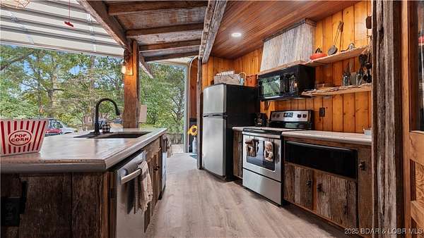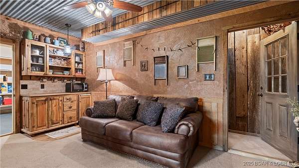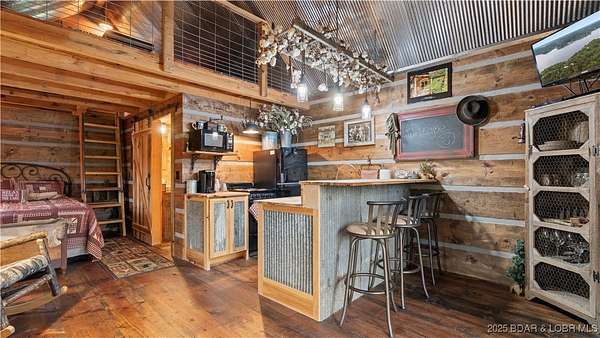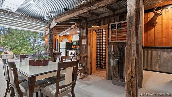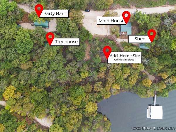 Lakefront Living with Endless Possibilities! Your own private retreat on 3.6 acres with 375 feet of pristine lakefront! This one-of-a-kind property is packed with features designed for both relaxation and entertaining. The main house offers two spacious bedrooms, abundant storage, and comfortable living spaces that capture beautiful lake views. A treehouse-style guesthouse adds a touch of fun and charm-perfect for visitors or a quiet escape among the trees. The impressive party barn is a true showstopper, complete with a full kitchen, bathroom, laundry and living quarters on the second level-ideal for hosting gatherings, weekend getaways, or extended stays. Outside, you'll find a man/she shed for all your projects and lake toys, plus 12+ established crappie beds for the avid angler. Enjoy easy lake days from your private dock featuring a 16x40 and 12x24 boat slip, perfect for swimming, fishing, and sunset cruises. Whether you're looking for a family retreat, vacation rental opportunity, B&B, or lakeside haven, this property offers a rare combination of privacy, space, and lakeside adventure!