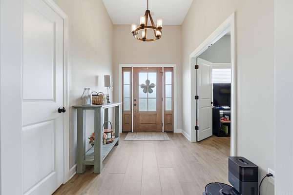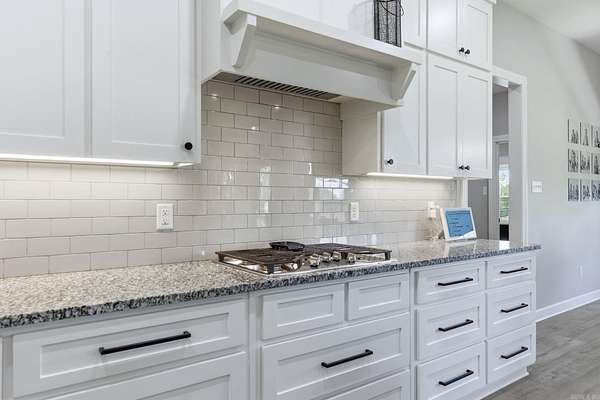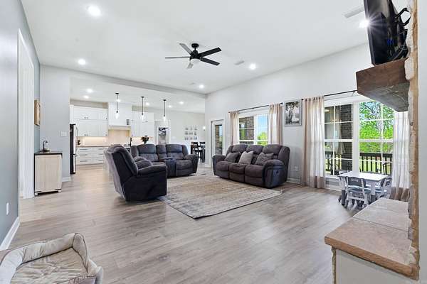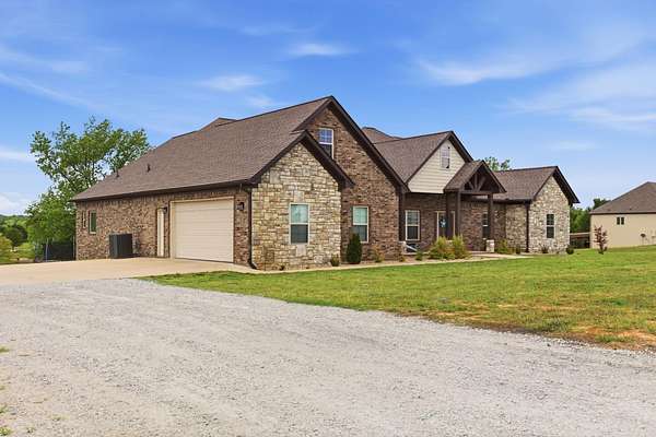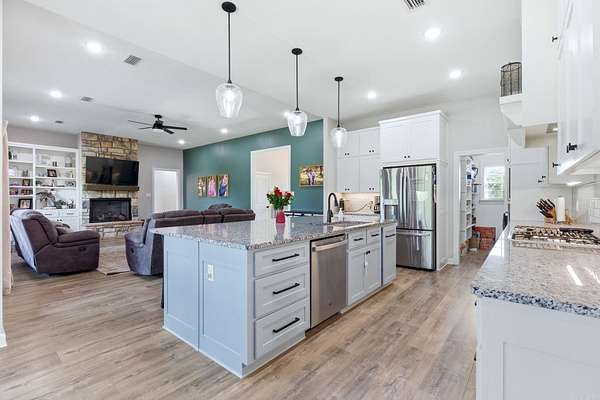 Exceptional 2022 Build on 2 Acres with Stunning Views! Welcome to this gem, nestled on 2 acres overlooking a picturesque pond. This home offers a large open-concept space that seamlessly connects the kitchen, living room, and dining area, perfect for entertaining. Enjoy the beauty of a gas fireplace with built-ins, a spacious island with a gas stove, and a butler's pantry that enhances this living space for all occasions. The split floor plan places the primary suite and laundry room conveniently for easy access. The primary suite features a large closet and a luxurious spa-like bath, creating your personal oasis. Additionally, there are three more bedrooms and a guest bath, along with a half bath ideal for guests. An extra room can serve as an office, playroom, dining room, or additional bedroom. Step outside to the expansive covered back porch, perfect for relaxation. There’s also a cleared area at the end of the driveway ready for a workshop or shed. The staircase leading to the attic and a safe room in the garage add to the home’s practicality. This property is a must-see! pond is not on property.