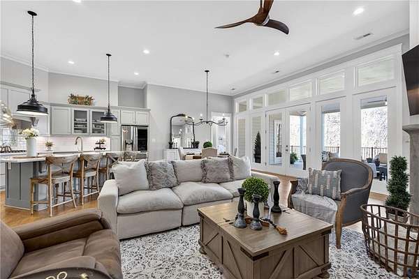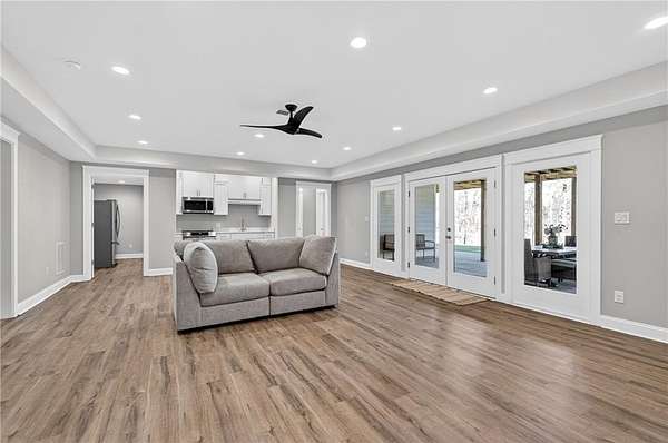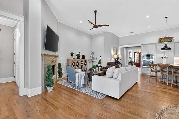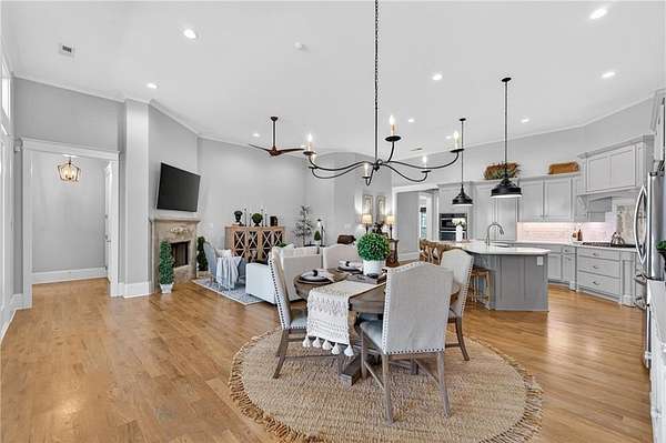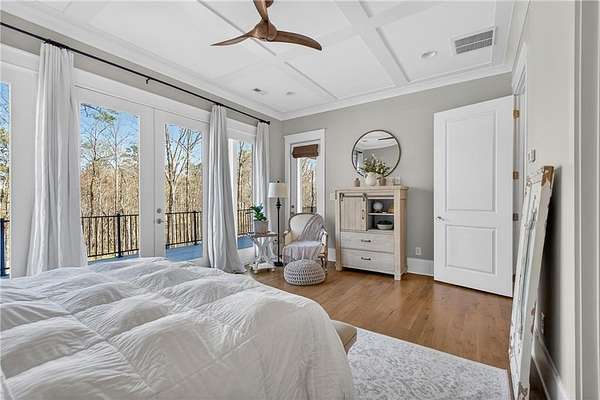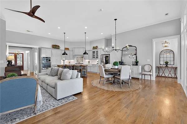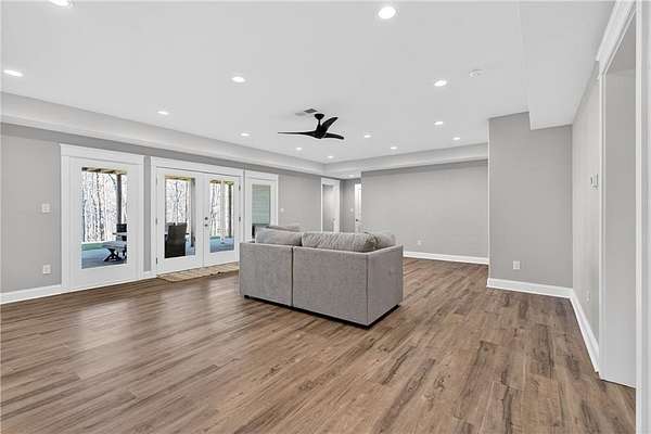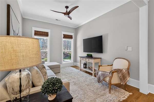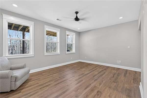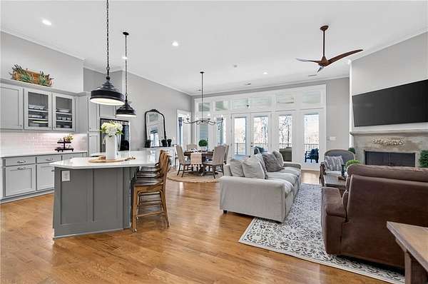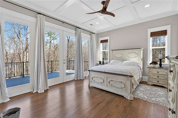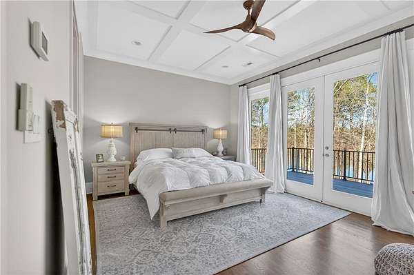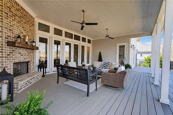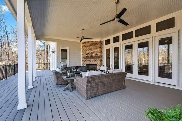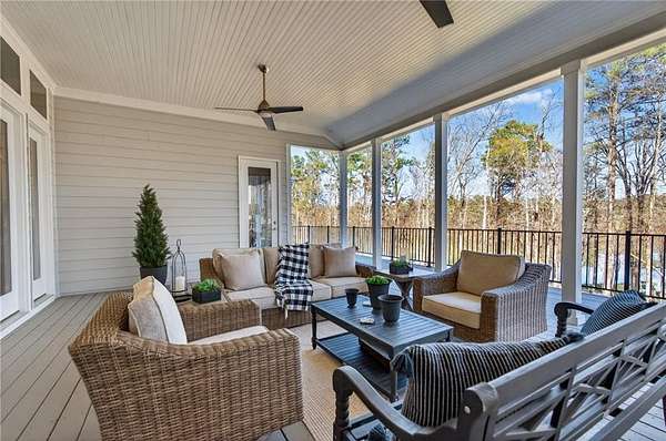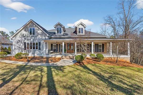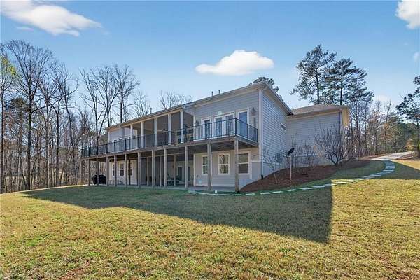 Welcome to this one-of-a-kind lakefront retreat where luxury, privacy, and space come together seamlessly. This custom-built ranch offers 7 spacious bedrooms, 5 full bathrooms, and a half bath, thoughtfully designed with an open floor plan perfect for both everyday living and entertaining. The interior is beautifully appointed with site-finished hardwood floors, a vaulted family room featuring a custom fireplace, and a gourmet kitchen equipped with quartz countertops, premium stainless steel appliances, and a large breakfast bar, perfect for gathering and creating memorable moments. Designed with both comfort and style in mind, the open-concept layout allows for seamless flow throughout the home. Enjoy breathtaking lake views from not one, but two master suites, each offering a peaceful escape overlooking the water. The fully finished basement expands the home's versatility, featuring a convenient kitchenette, an additional bonus room, and a dedicated movie theater room already wired and ready for your personal finishing touches. Create the ultimate entertainment space tailored to your vision. Step outside to a large deck complete with a cozy fireplace. Perfect for relaxing evenings or hosting gatherings while taking in the serene surroundings. Situated on a lush 1.67-acre lakefront lot, this property offers panoramic water views, private lake access, and a wooded area creating a true connection to nature. You'll also enjoy the added bonus of four blueberry trees and plenty of outdoor space for your family to explore and enjoy. Car enthusiasts and hobbyists will appreciate the impressive 4-car garage. Ideally located just minutes from Trilith, with easy access to filmmaking studios, shopping, dining, scenic trails, and parks. The home is also conveniently close to Piedmont Hospital, major interstates, and highly rated schools. This exceptional property truly has it all: space, elegance, privacy, and a setting that makes it unlike anything else on the market. Fall in love with a home that offers both luxury living and endless potential in a serene lakefront setting.