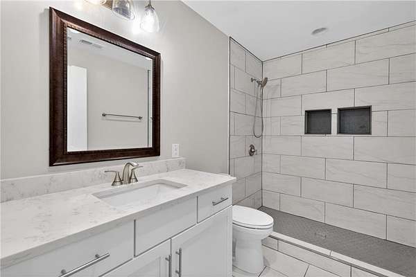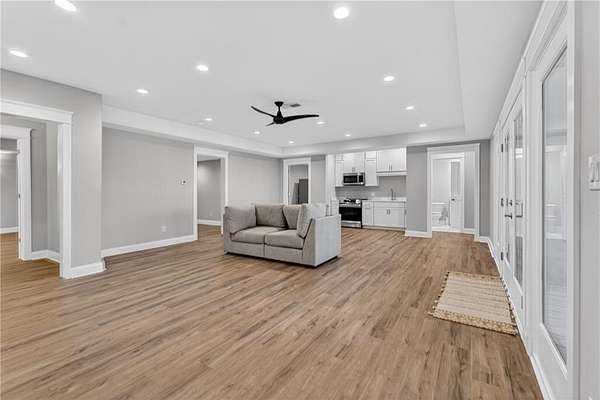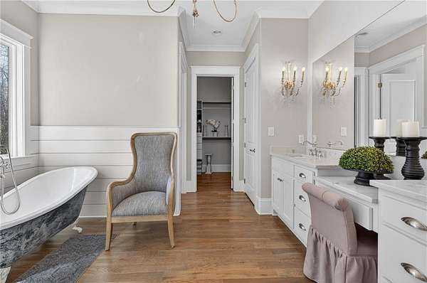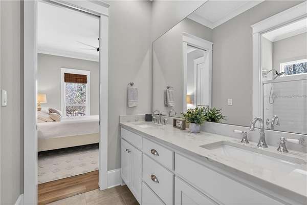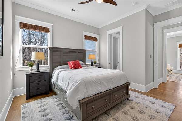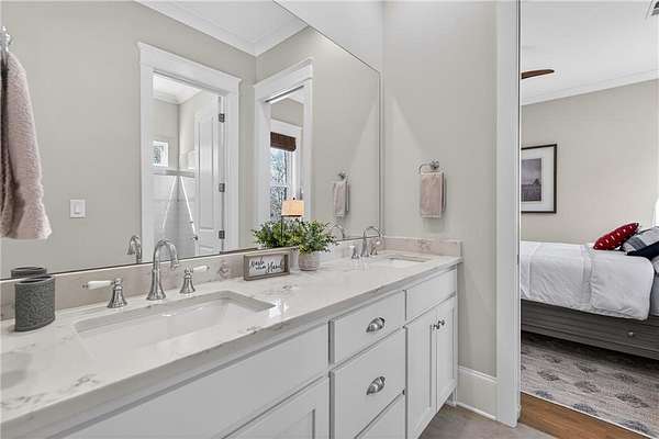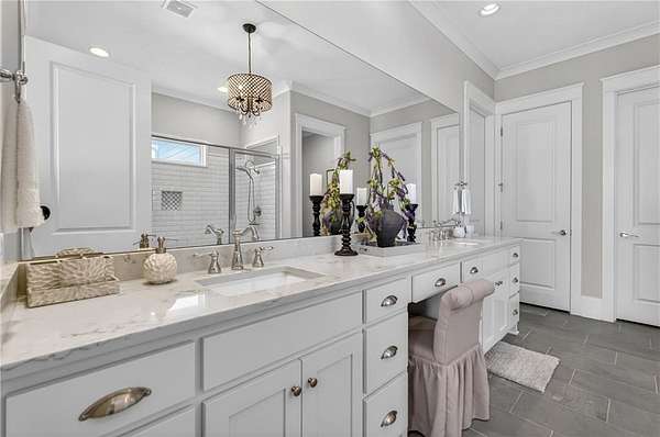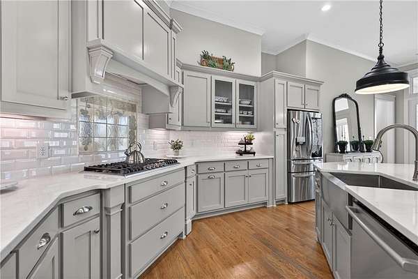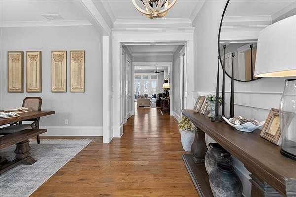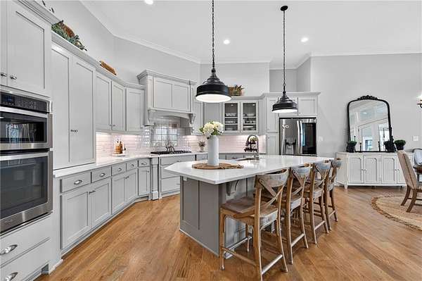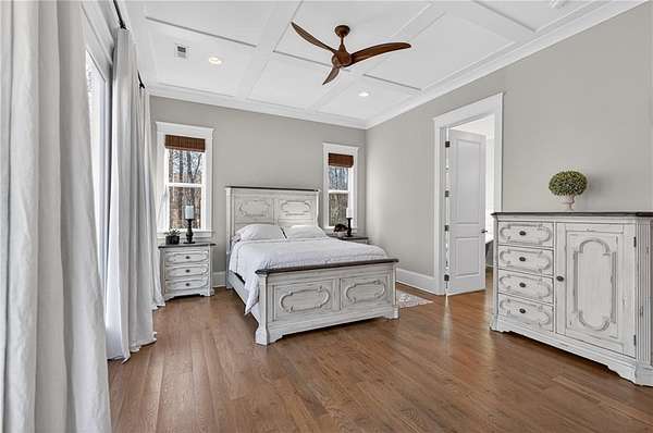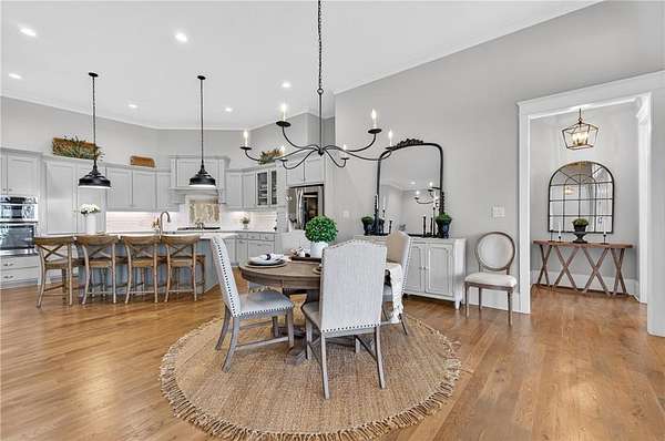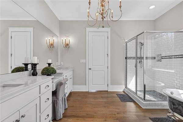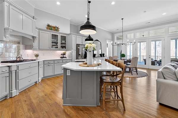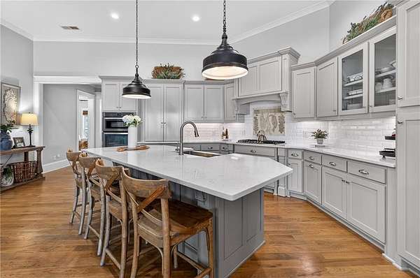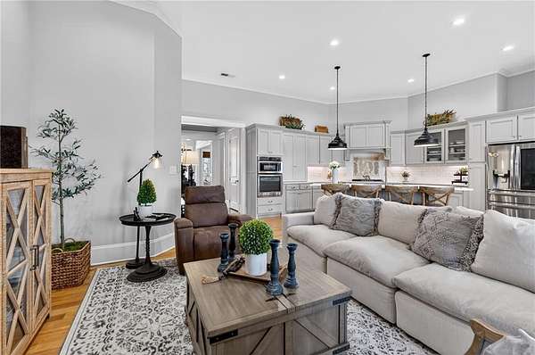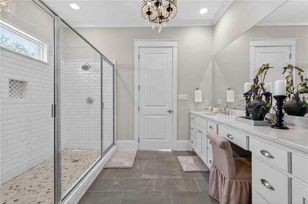 Welcome to this one-of-a-kind lakefront retreat where luxury, privacy, and space come together seamlessly. This custom-built ranch offers 7 spacious bedrooms, 5 full bathrooms, and a half bath, thoughtfully designed with an open floor plan perfect for both everyday living and entertaining. The interior is beautifully appointed with site-finished hardwood floors, a vaulted family room featuring a custom fireplace, and a gourmet kitchen equipped with quartz countertops, premium stainless steel appliances, and a large breakfast bar, perfect for gathering and creating memorable moments. Designed with both comfort and style in mind, the open-concept layout allows for seamless flow throughout the home. Enjoy breathtaking lake views from not one, but two master suites, each offering a peaceful escape overlooking the water. The fully finished basement expands the home's versatility, featuring a convenient kitchenette, an additional bonus room, and a dedicated movie theater room already wired and ready for your personal finishing touches. Create the ultimate entertainment space tailored to your vision. Step outside to a large deck complete with a cozy fireplace. Perfect for relaxing evenings or hosting gatherings while taking in the serene surroundings. Situated on a lush 1.67-acre lakefront lot, this property offers panoramic water views, private lake access, and a wooded area creating a true connection to nature. You'll also enjoy the added bonus of four blueberry trees and plenty of outdoor space for your family to explore and enjoy. Car enthusiasts and hobbyists will appreciate the impressive 4-car garage. Ideally located just minutes from Trilith, with easy access to filmmaking studios, shopping, dining, scenic trails, and parks. The home is also conveniently close to Piedmont Hospital, major interstates, and highly rated schools. This exceptional property truly has it all: space, elegance, privacy, and a setting that makes it unlike anything else on the market. Fall in love with a home that offers both luxury living and endless potential in a serene lakefront setting.