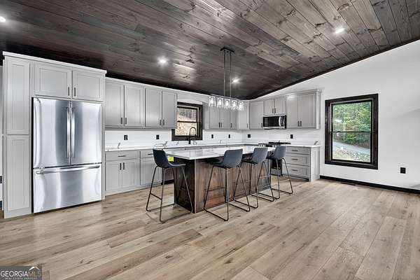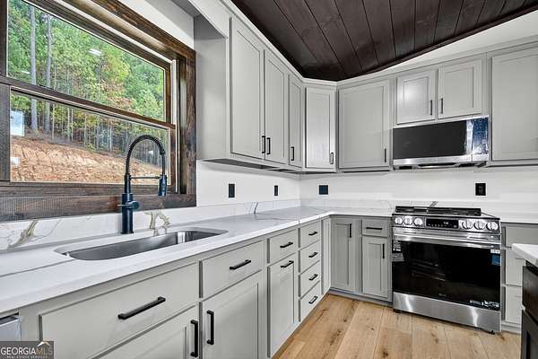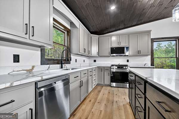 Experience the perfect blend of modern design and mountain charm in this stunning home, located in a gated subdivision with all-paved access and a large parking area for ultimate convenience. The open-concept floor plan is enhanced by soaring cathedral ceilings and expansive walls of glass, allowing natural light, seasonal mountain views, and the surrounding beauty to flow throughout. The chef's kitchen shines with sleek quartz countertops and custom cabinetry, while the Great Room is anchored by a striking quartz fireplace. Step outside to a spacious deck with its own outdoor fireplace-ideal for entertaining or simply unwinding in the crisp mountain air. The main level offers convenience and comfort with a guest bath, a luxurious master suite featuring a spa-inspired bath, and a dedicated laundry room. The fully finished terrace level expands the living space with two additional bedrooms, a bonus/rec room, a wet bar, a second laundry area, and another deck with its own outdoor fireplace. Perfectly designed for both everyday living and entertaining, this home adapts to any lifestyle. Set in a prime location near Georgia and North Carolina, adventure awaits just beyond your doorstep-spend your days fishing or boating on nearby lakes, whitewater rafting on the Ocoee River, or trying your luck at the casino. Whether you're seeking a full-time residence or a seasonal retreat, Tennessee offers an added benefit-no state income tax-making this an exceptional opportunity to enjoy the mountain lifestyle without compromise.