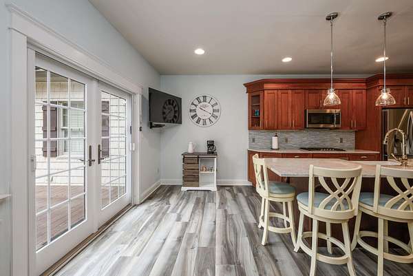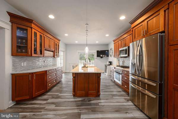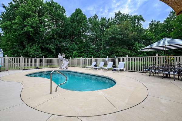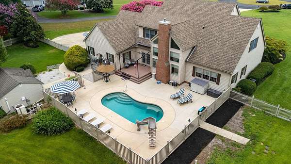 A private, park-like retreat set on 3.3 acres, where timeless charm meets resort-style living-this exquisite custom-built 3-bedroom, 3 full and 2 half bath home is filled with thoughtful details, from custom molding and wood accents to beautifully designed living spaces throughout. The gourmet kitchen showcases stunning countertops, custom tile work, a gas cooktop & oven, and quality cabinetry, while the sun-filled family room overlooks the pool and features a gas fireplace with eye-catching woodwork. The first-floor primary suite offers a spacious, relaxing escape with a beautifully appointed bath and dual shower areas. A flexible room provides the perfect space for a home office or den, and the well-designed layout includes two powder rooms-one conveniently located for poolside access. Even everyday tasks feel elevated with a generously sized laundry room complete with a dog washing station. Upstairs, you'll find two additional bedrooms, two full baths, and an expansive bonus space ideal for a recreation room, office, or overflow guest area. Storage is abundant throughout, complemented by an oversized 3-car garage with sealed floors. Step outside and you'll understand what truly sets this property apart-an incredible outdoor setting featuring a fenced backyard, heated saltwater pool, outdoor shower with an additional dog wash station, and a conditioned workshop or "she shed" perfect for hobbies or quiet retreat. Surrounded by lush landscaping supported by an irrigation system and backed by serene woods, this property offers privacy, space, and a lifestyle that's hard to match.