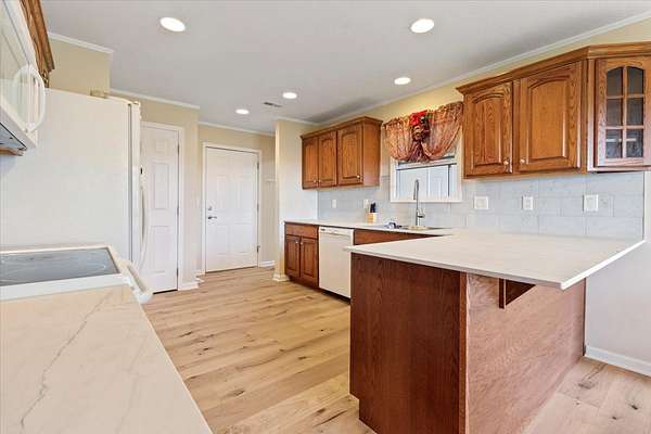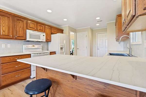 Newly updated with engineered hardwood floors, tile floors, and quartz countertops
