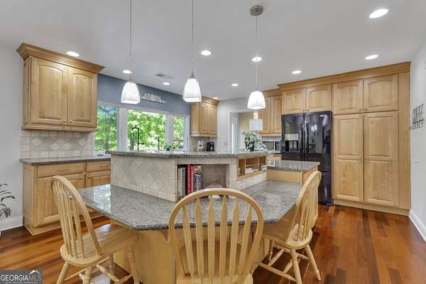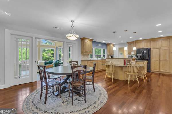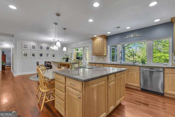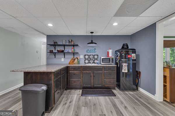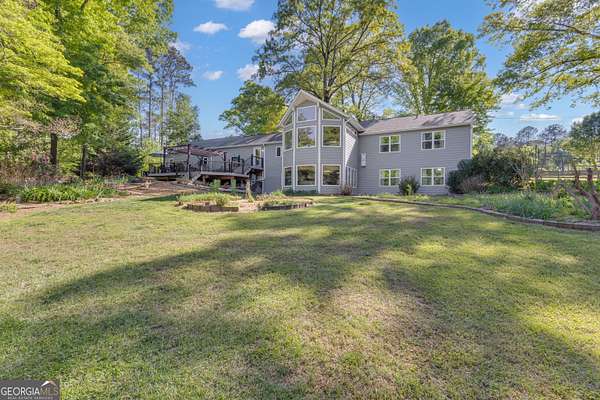 Set on 3.65 picturesque acres with a barn in Fayette County and the Sandy Creek High School District, this charming, lovingly maintained home showcases rolling topography, vibrant seasonal blooms, and a serene pond marking the headwaters of Sandy Creek. You'll enter this beautiful property along a winding driveway that creates a true sense of retreat. From the moment you step onto the welcoming covered front porch, you'll feel the warmth and comfort of home. Inside, a spacious dining room flows into a beautifully renovated kitchen featuring granite countertops, abundant cabinetry, and thoughtfully designed storage throughout. A extra-large eat-in kitchen area has room for the whole family! A light-filled living room/sunroom provides relaxing views of the pond and surrounding landscape, creating the perfect place to relax year-round. The main level offers three bedrooms (including the primary suite), and two full baths, along with a convenient laundry and mud room with access to an expanded 605 sq ft synthetic deck with pergola/awning ideal for outdoor entertaining. The terrace level adds exceptional versatility with two additional bedrooms, a full bath, media room, kitchenette, game room, one-half bath, and a flexible space perfect for a home office, workshop, or craft room. A 2+ car garage includes an additional storage bay, and a workshop/barn with loft that is detached which completes the home's functional appeal. This is not a cookie-cutter property - it's a unique, beautifully cared-for home with character and soul, ready to welcome its next owner. (Please ask your agent for a copy of the eight-page document provided by the seller detailing all the work completed on the property.) Make an appointment to see this unique home!
