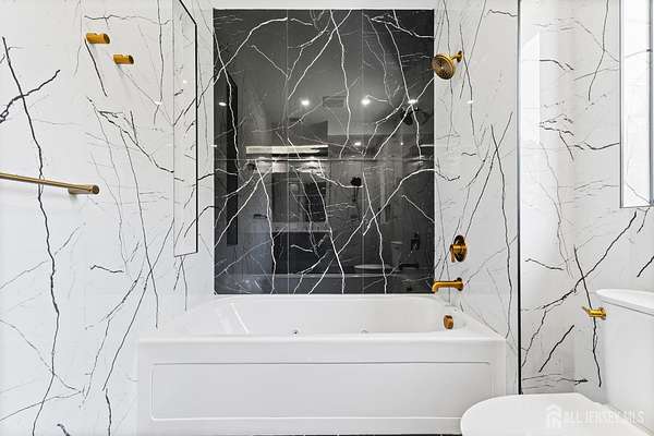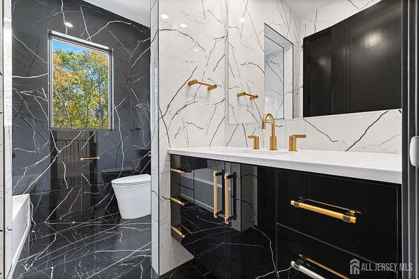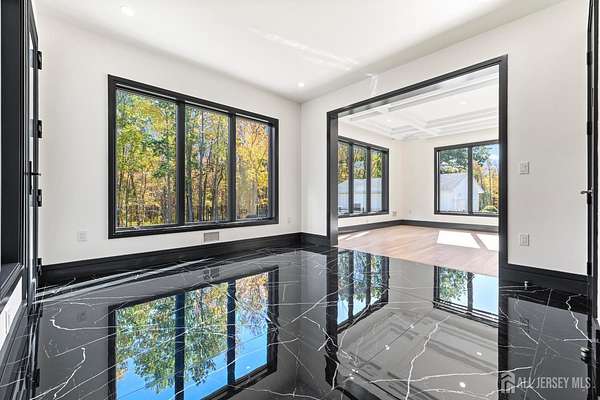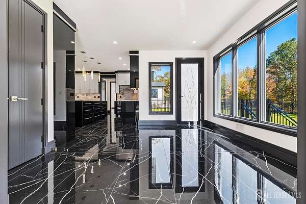 Contemporary Colonial Masterpiece - Built to Last Generations***This contemporary colonial offers a rare opportunity to own a home built with uncompromising quality and timeless design. With 4,400 square feet of pure elegance, this 6-bedroom, 4.5-bath masterpiece is set on 2 serene acres at the end of a quiet dead-end streeta NYC commuter's dream. As you approach via the circular paver driveway edged in Belgium block, the stucco and ledgestone faade and steel French entry doors make an unforgettable first impressionaccented by modern exterior lighting that showcases the home's architectural lines. Step inside to soaring 9-foot ceilings on both levels and site-finished hardwood floors throughout. The immaculate designer kitchen features all Electrolux appliances with 66'' side-by-side column fridge/freezer, wall oven, high end appliances, a waterfall island, custom soft close cabinetry, and a full height granite backsplash. The kitchen floor puts on display the porcelain 2 foot by 4 ft tiles installed to perfection. An oversized dining room located just off the living room provides the perfect setting for everything from relaxed weekday dinners to grand-scale entertainment. As you tour the home you notice the detailsfrom Anderson Casement Low-E windows, solid core doors with inlays to all Moen bathroom fixtures including 8'' spread faucets to the matching door stops all put on display the builders attention to detail and desire to achieve perfection. With five bedrooms and three full baths upstairs, plus a first-floor bedroom and full bath, this layout is ideal for multi-generational living or guest accommodations. The nearly 20 closets are each fitted with custom built-ins. Each bathroom is surrounded in oversized floor-to-ceiling tile creating a luxurious spa-like atmosphere. Each vanity is floating/wall mounted which offers a modern, sleek look, creating the illusion of more space, and (of course) making the bathroom easier to clean by leaving the floor open underneath. The primary suite delivers a spa-like retreat rivaling a five-star hotel, featuring a showstopping walk-in shower, quartz countertops, dual sink, and stunning finishes throughout. The laundry room is a dream come truebeginning with it's 2nd floor location. This folding abode'' is complete with built-in cabinetry, slop sink, and full closet. Practicality meets luxury with two-zone heating and air conditioning both with high efficiency units. The walk out basement was framed with egress windows ready for finishing. From the deck you can overlook the flat and usable yard that is ready for your personal touches and design. A multi-zone irrigation system landscaped front and rear yards. Located in Old Bridge's desirable East Side, this estate offers quick access to Route 9, the Garden State Parkway, and the NJ Turnpike. Every square foot of this home was designed for those who appreciate the difference between a house built to codeand one built to last a lifetime.