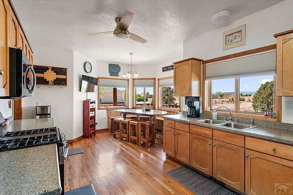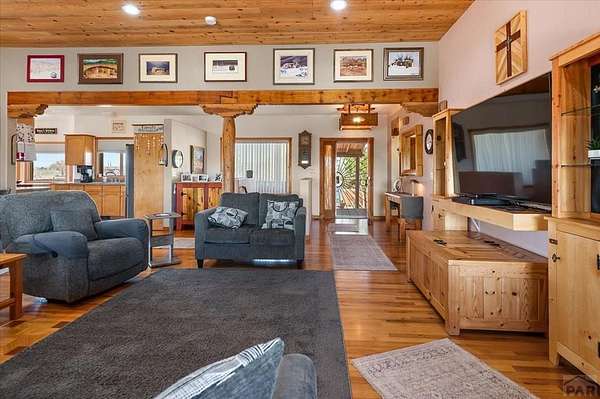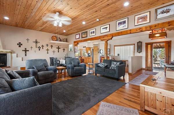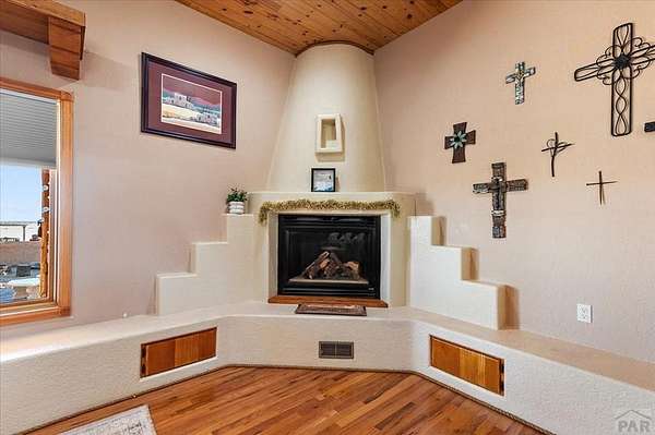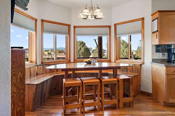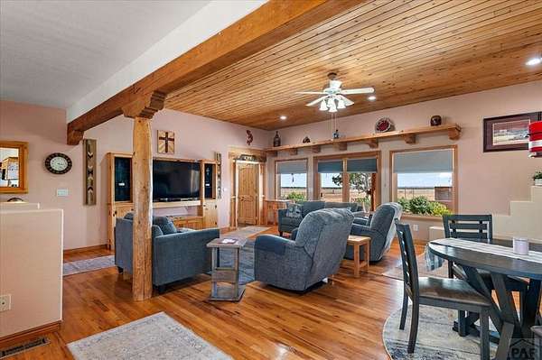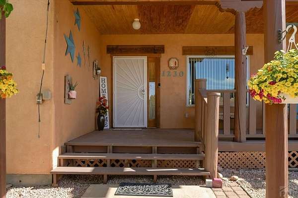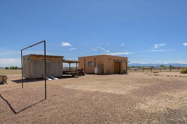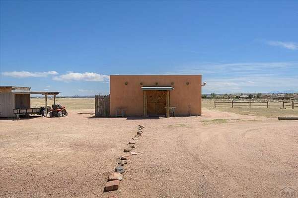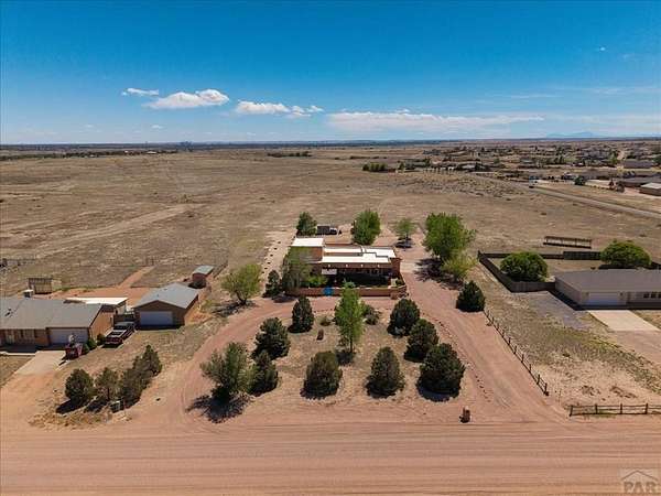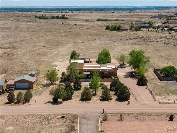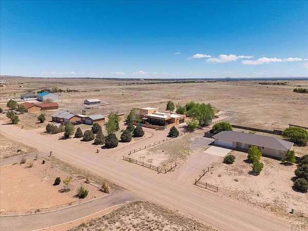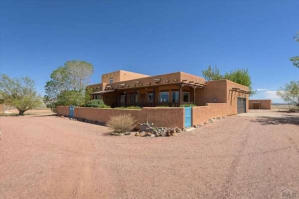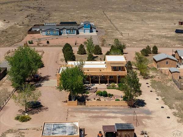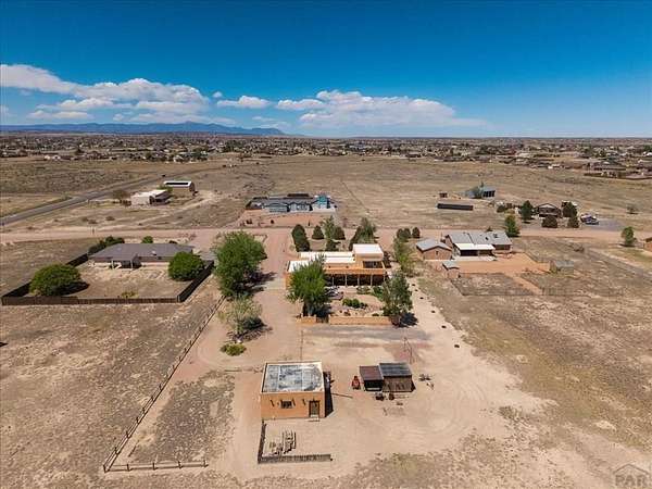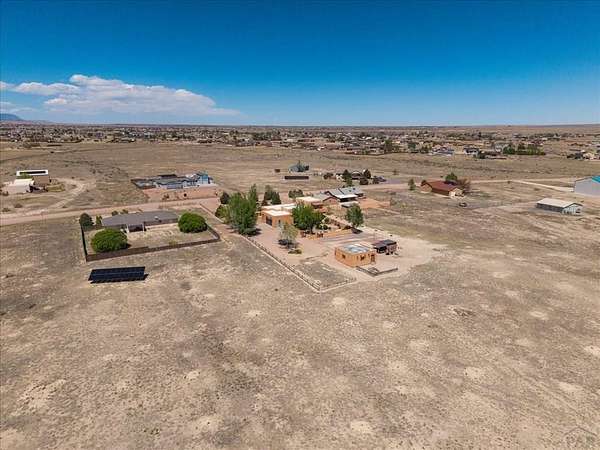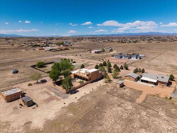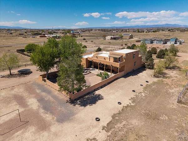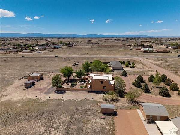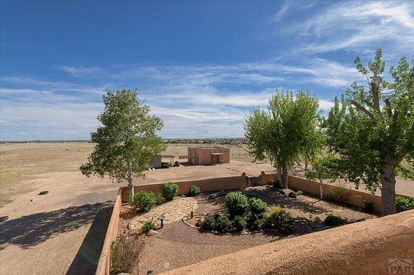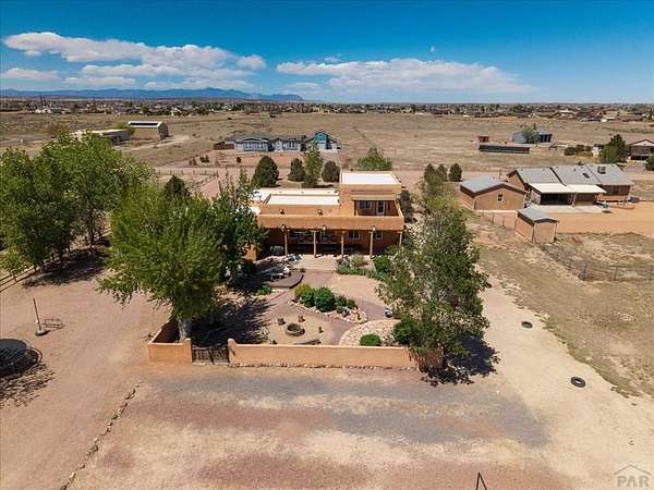 You've officially found it-your future home awaits. Experience the perfect blend of character, space, and breathtaking scenery in this custom-built adobe-style retreat nestled on over 2 acres in Pueblo West. Offering approximately 4,100 square feet of thoughtfully designed living space, this property delivers both comfort and room to grow. Wake up each morning to stunning mountain views from your cozy built-in breakfast nook, or step onto the rooftop patio to enjoy unobstructed panoramic scenery with your morning coffee. Inside, a bright and welcoming foyer opens into a spacious family room filled with true Southwestern charm, featuring soaring 10-foot hardwood ceilings, a custom Kiva gas fireplace, and expansive picture windows that flood the space with natural light. The kitchen is complete with stainless steel appliances, abundant natural light, and ample space. There is a large pantry for all the extras. Step outside to your own private oasis. The backyard is perfect for relaxing or hosting, featuring a covered patio, fire pit, and plenty of space to enjoy Colorado's beautiful evenings. Thoughtful additions like xeriscaping, a drip irrigation system, a heated 25 x 25 workshop, storage shed, and attached garage with extra storage makes this property as functional as it is beautiful. There is access to outdoor recreation and close to shopping -all while having a place that truly feels like home. Call today for your private showing.