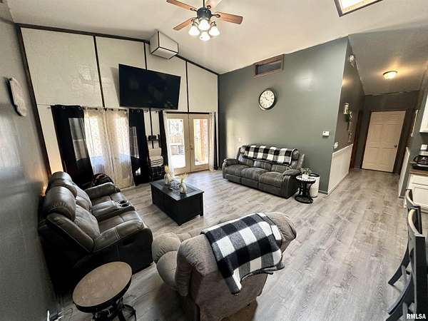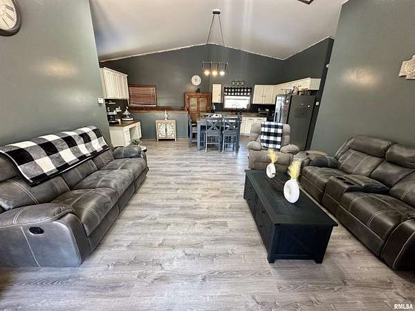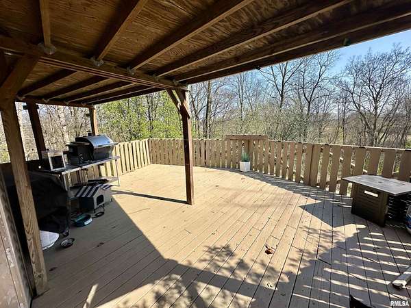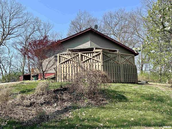 An outstanding opportunity to own 8.9 acres of serenity. This 2BR (potential for additional bedrooms in the basement), 2BA home is nestled quietly amongst the trees and wildlife just outside of Arenzville. Open floor plan upstairs with soaring ceilings and deck access with beautiful views. Updated flooring. Newer roof. So much potential in the basement! Triopia schools. City water. Inspections welcome but selling AS-IS.