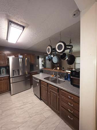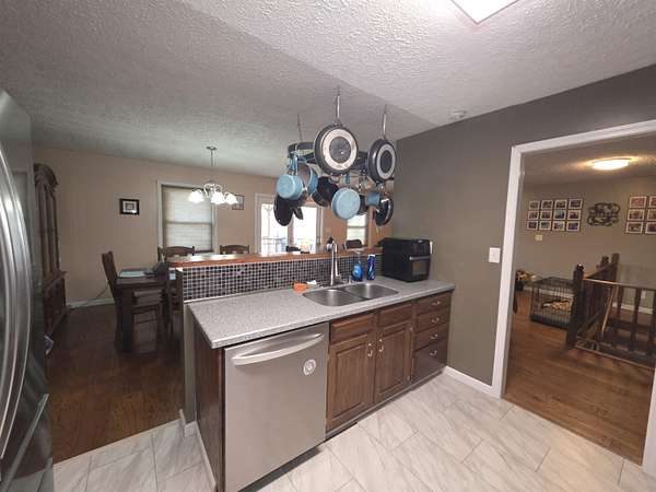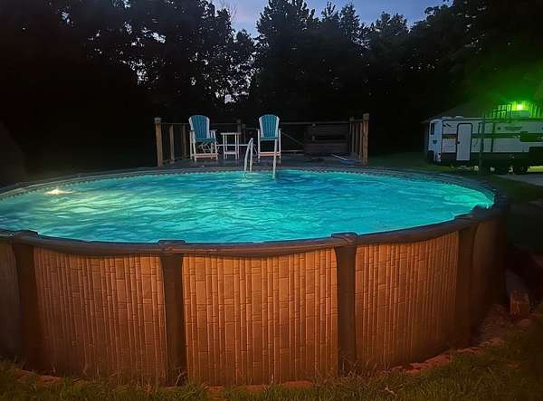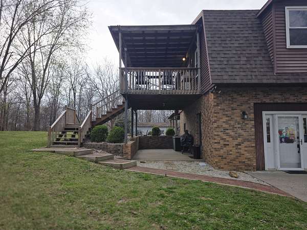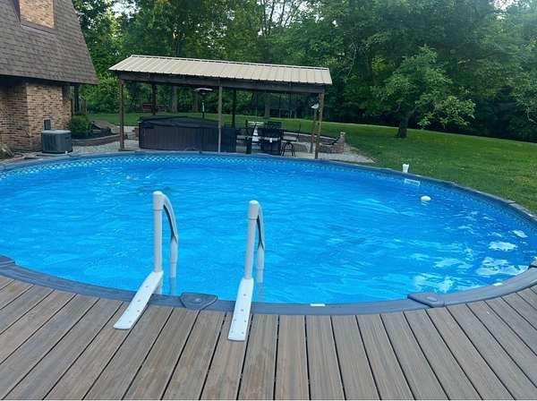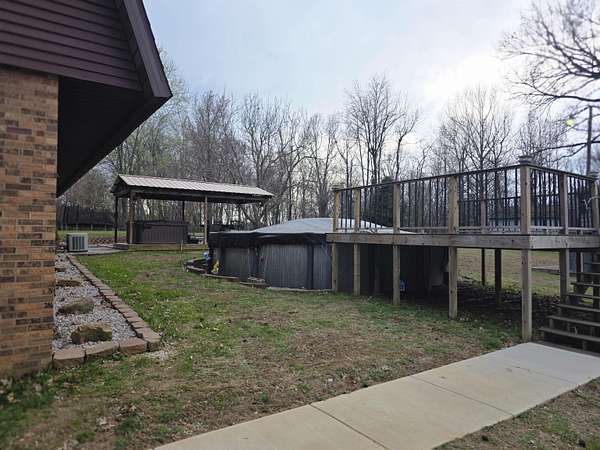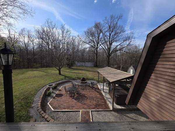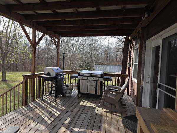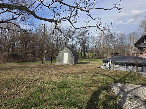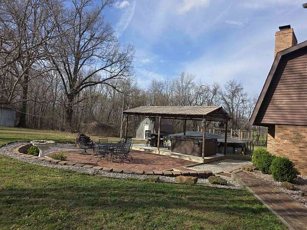 Discover the privacy and versatility of this well maintained 3 bedroom, 3 full bath home situated on 8.4 acres. The home offers spacious living areas including a second living area that is ideal for guests, entertainment, or additional family space. A bonus room with kitchenette/wet bar provides flexible use and could serve as a potential in-law suite, office, or recreation room. The kitchen has been updated with new appliances and flooring in 2025, and the primary bath, downstairs bath, and kitchenette have been renovated. The roof is approximately 8 years old. An upper level side deck measuring 20x12 provides additional outdoor living space. The property also includes several outbuildings and amenities including a 28x20 detached garage, a 15x12 storage shed, and a 20x10 gazebo. A large 40x28 shop with dirt floor and overhead hoist offers excellent space for equipment, mechanical work, or projects. A 24 ft pool with a 15x12 composite deck installed in 2020 provides additional outdoor enjoyment. A hot tub and brick firepit area create additional outdoor gathering spaces. The 8.4 acre property features a mix of open lawn and wooded areas, along with a blacktop driveway and concrete pad between the home and garage. Low maintenance landscaping adds to the appeal while keeping upkeep manageable. This property offers a rare combination of acreage, updated living space, and multiple outbuildings.