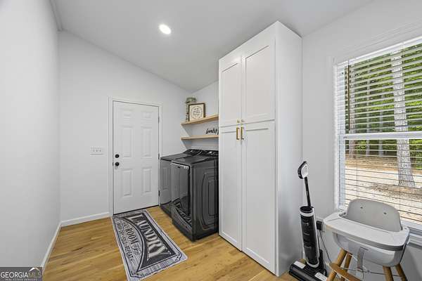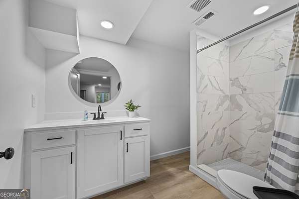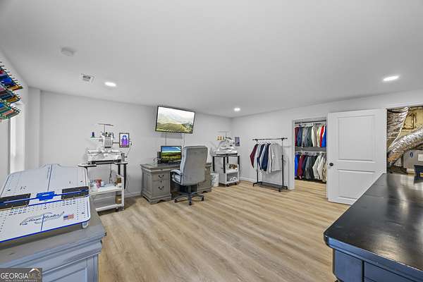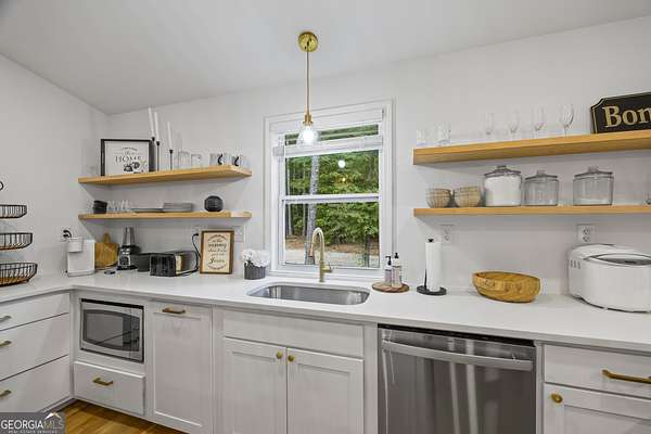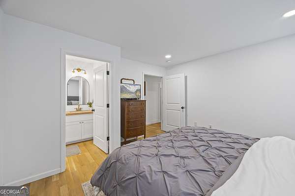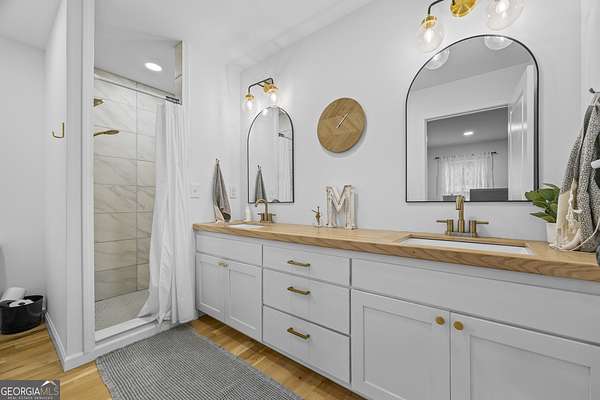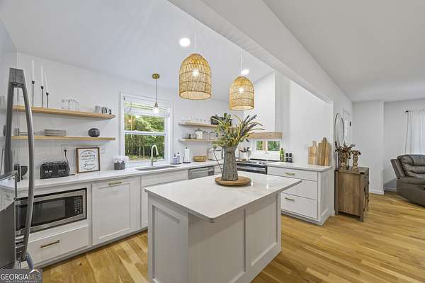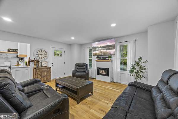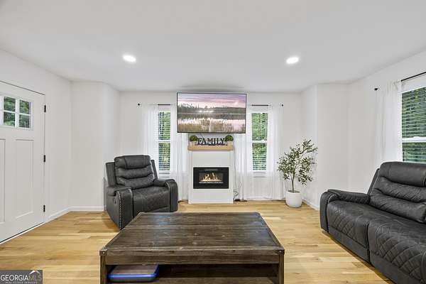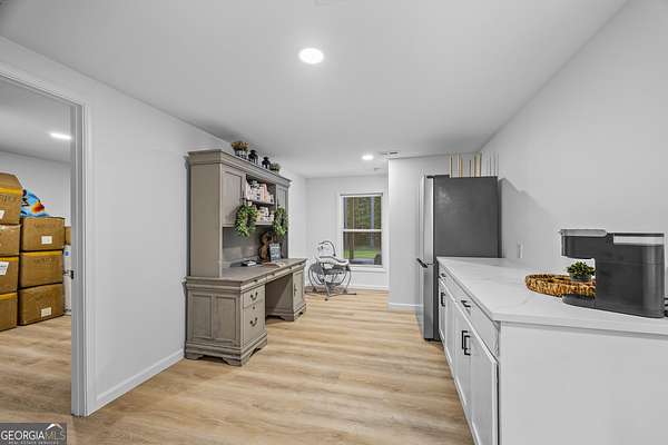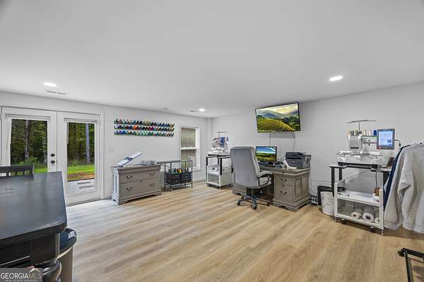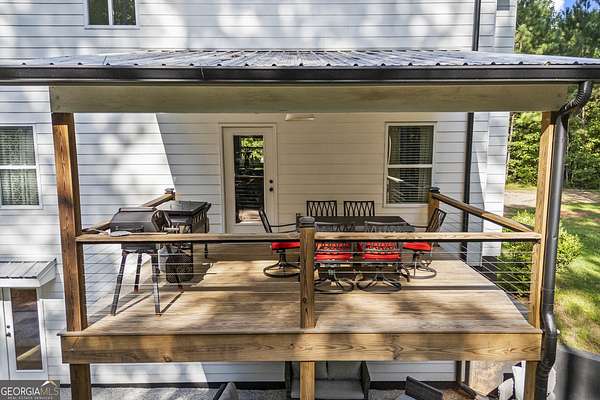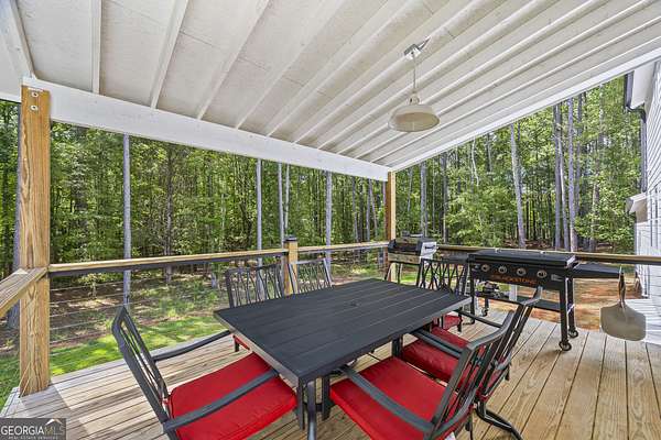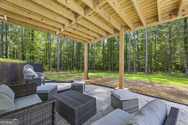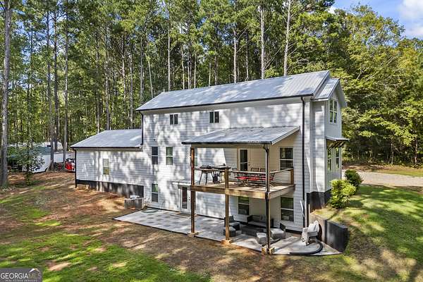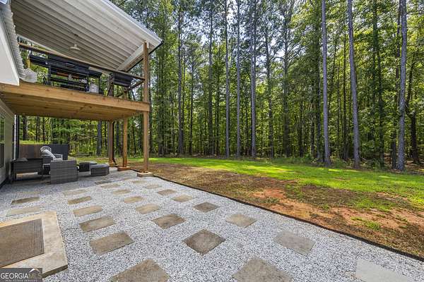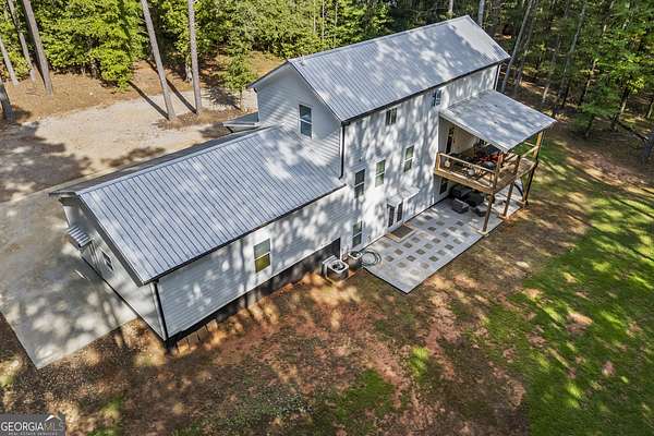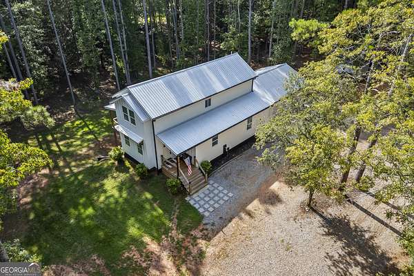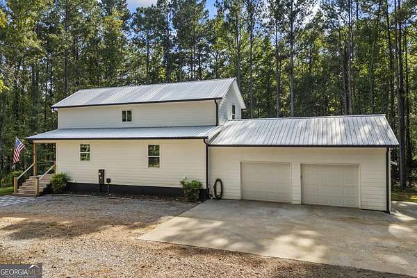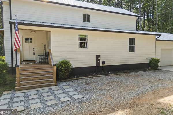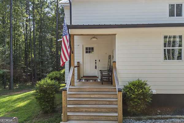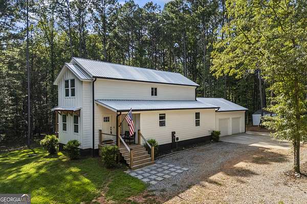Tucked away on 2.7 wooded acres yet just minutes from Highway 78, this charming home offers easy access to Monroe, Athens, and Bethlehem while providing the seclusion and space you've been looking for. Downtown Monroe is less than 3 miles away and features locally owned shops, seasonal festivals, outdoor concerts, and excellent dining. A welcoming front porch with a stained wood ceiling opens into a light-filled floor plan with stunning white oak floors throughout the main level. The living room flows seamlessly into the dining area and kitchen, designed for both everyday living and entertaining. The kitchen serves as the heart of the home with quartz countertops, custom cabinetry, floating shelves, stainless steel appliances, and a large island. Also on the main level are a half bath and a spacious mudroom/laundry room with built-in cabinetry and access to the oversized two-car garage. The owner's suite is complete with a walk-in closet with built-ins and an en-suite bath featuring double vanities and a tiled shower. Upstairs, you'll find a generous loft area or flex space, along with two oversized bedrooms, each with its own private bathroom with tiled floors and tiled tub/shower combo. The full finished basement expands the home with a kitchenette, a large living/flex area with a generous sized storage closet, a bedroom, and a full bath with a tiled shower. Step outside and enjoy the peace and privacy of your wooded surroundings from the covered deck or extended patio. With its thoughtful design, high-end finishes, and an unbeatable location close to shopping, dining, and entertainment, this home offers the best of both worlds, peaceful living with quick access to everything.