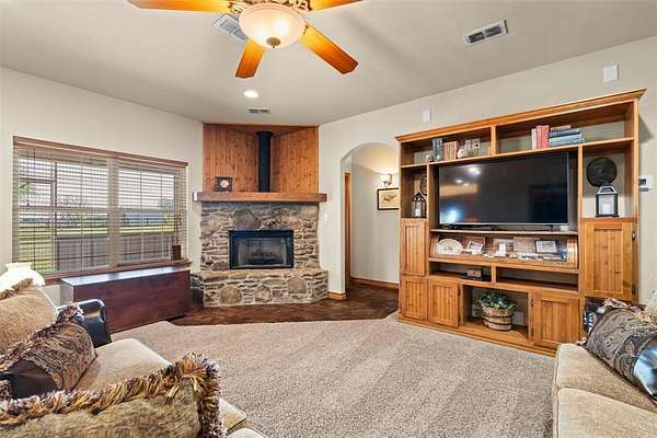 A distinctive custom built 2006 residence on 2.06 fully fenced acres on the sought after west side of Fort Worth. It's just a few miles north of Weatherford. Spanning approximately 3,144 square feet, including an enclosed garage. This property presents 4 bedrooms, 3 full baths, and 2 half baths with a well designed layout that supports both everyday living and room to spread out. Interior enhancements reflect care and investment, featuring quartz countertops installed in 2024, new appliances, updated plumbing fixtures, new cabinet hardware installed in 2026, home does have PEX plumbing, and added spray foam insulation for improved efficiency, complemented by a new HVAC system installed in 2024 and two water heaters supported by propane servicing the fireplace, oven, and hot water systems. This workshop, family space or game room combo is really something special. The 1,400 square foot shop built in 2024 sets this property apart, offering its own separate spaces, a level of finish rarely found, with a 700 square foot workshop complete with roll-up door, windows, and multiple access points, alongside a 700 square foot fully insulated, heated and cooled finished space featuring French doors and a high end wood-burning stove, creating an ideal environment for entertaining, recreation, or a private retreat. The exterior continues to deliver with a few porch spots, mature fruit trees, new fencing completed in 2024, a rebuilt well house in 2025, upgraded pressure tank in 2025, new water softener in 2026, and a pipe entry with automatic gate providing both privacy and a polished arrival, along with a metal roof, a three-car carport built in 2020, chicken coop and yard installed in 2025, a heavy-duty enclosed back porch for pets added in 2025. This is a property that reflects pride of ownership, thoughtful improvements, and a level of versatility that is increasingly difficult to find in Parker County.