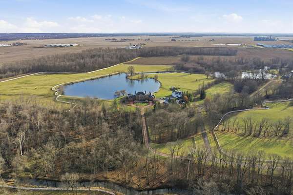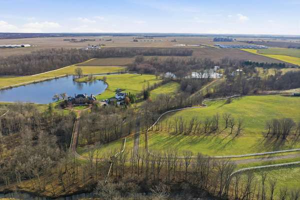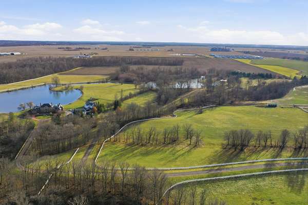 A truly once-in-a-generation offering in the heart of Licking County -- 204.75 contiguous acres across three parcels presenting an extraordinary blend of luxury living, income potential, and large-scale development opportunity. With approximately 3,600 feet of road frontage and electric already on site, this property is positioned for both immediate use and long-term investment value. Located less than 8 miles from the rapidly expanding tech corridor, this property stands in the path of significant regional growth while still offering unmatched privacy and natural beauty. The possibilities are extensive -- create a private family compound, luxury equestrian estate, corporate retreat, wedding and event destination, agricultural operation, or explore large-scale development or solar investment opportunities. At the center of the estate sits a remarkable 9,000+ square-foot primary residence featuring a 6-car garage, complemented by a nearly 4,000 square-foot guest residence with its own 3-car garage overlooking a breathtaking 11+ acre private lake. The grounds are thoughtfully improved with a 3,000 square-foot event venue with parking, two guest cabins, and expansive open and wooded acreage creating a private retreat rarely found within Central Ohio. Properties of this scale, infrastructure, and proximity to major economic expansion seldom reach the market. Whether you envision a legacy estate or a strategic investment, this is a landmark opportunity to secure one of Licking County's most versatile and significant land offerings.