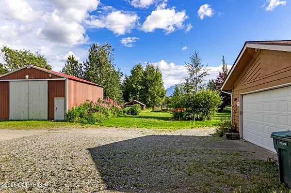 Est $3,432/mo2.5% VA assumable loan BTV. $13K seller contribution see in documents. Horse property on 2.57 acres with views! This home has ample space inside and out. Large kitchen with plenty of pantry space. Open concept with windows that offer ample sunlight & views. Mastery bath w/ a WIC and 5 piece bath with in floor heat. A large wrap around deck w a fenced back yard, with a barn and arena. 2 year old Garage door and garage unit heater. Carpet was replaced 3 years ago. The property is backed up to the Musk Ox farm.