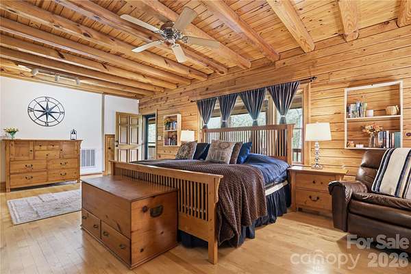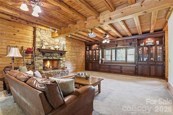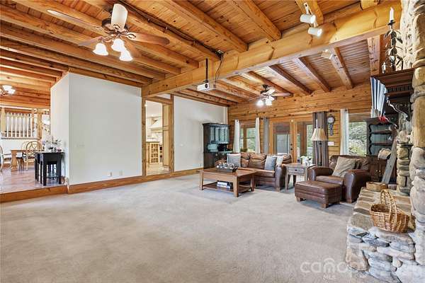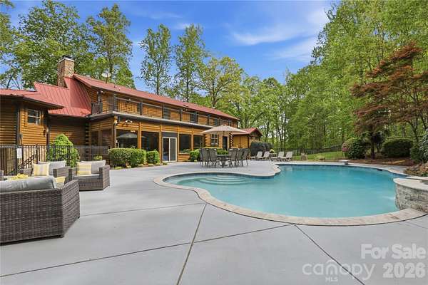 Tucked behind a private gate and set far from the road along a winding drive, 12300 McCord Road in Huntersville offers a rare blend of peaceful seclusion and timeless rustic charm. Nestled on 11.27(+/-) acres of serene, wooded beauty, this remarkable property invites you to slow down, breathe deeply, and experience true country elegance-just minutes from modern conveniences. This stunning 6,033 sq ft Custom Built Log Cabin home is thoughtfully designed with both comfort and character in mind. Featuring 7 spacious bedrooms and 4 bathrooms and 2 1/2 baths, including a 2nd living quarter with access from the home and garage. At the heart of the home, the gourmet chef's kitchen featuring a Viking Gas Stove and oven, is a true delight-crafted for both everyday living and entertaining, with ample space, high-end built-in finishes, and a welcoming atmosphere that makes every meal feel special. Large center prep island with its own sink & beverage fridge, and plenty of room for seating at the island. Enjoy the large great room with beautiful built-ins and gas fireplace where you can gather and watch your favorite movie on the large screen, just add the popcorn! Primary Bedroom is its own suite with gas fireplace and its own door to the gorgeous porch that expands to the front of the home, perfect for a cup of coffee in the morning or enjoying the sunset in the evening. The primary bedroom offers its own ensuite with a see-through gas fireplace between the spa-like walk-in shower, built-ins in the changing room + walk in closet and 2nd closet. Just off the primary ensuite/changing room is a work-out room with multi functioning for many options. Step outside through the sunroom just off the great room to your own private retreat, where a beautiful in-ground pool with a cascading waterfall and relaxing hot tub awaits. The sunroom is a wonderful place to unwind from a day outside, this stunning room includes a kitchen, and 1/2 bath that has a door to come in from the pool. Upstairs, a spacious living/game room offers endless possibilities-whether for recreation, media, built-in wet bar, or a private escape to the expansive deck that overlooks the pool. Just down the hall is 2 more bedrooms, full bathroom and large laundry room with plenty of cabinets and folding counter. Step down into the additional 2nd living quarters, featuring a spacious 2nd living area that leads you into the 2nd living quarters, where you will find a full bathroom, 2 bedrooms and a large living area with gas fireplace, kitchen, and room for an office. The home is complete with a 2-car garage with ample extended space and breezeway between garage and home with access to the garage from the 2nd living quarters from within the home. If you are looking for a place to tinker, the garage also has a workshop area and an additional laundry room with washer and dryer. Additional large storage room a rear of home near pool entrance. This RARE GEM in Huntersville offers an abundant room to roam, explore, and enjoy the beauty of your own land. From the gated entrance to the peaceful acreage beyond, this property is more than a home-it's a lifestyle of privacy, charm, and rustic luxury, paired with incredible potential in one of Huntersville's most desirable settings.