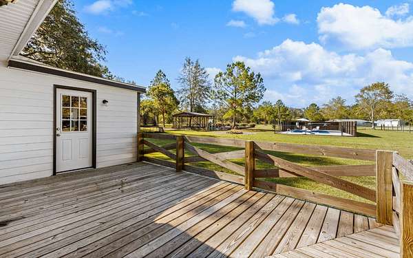 *Back on the market at no fault of the sellers! Welcome to your homesteading dream, offering the perfect blend of country living and modern comfort. This property is fully fenced and cross-fenced with a large 36'x36' barn providing a truly move-in ready home for you and your animals. Surrounded by privacy fencing and a durable concrete deck, the spacious 16'x32' inground pool reaches 8 feet deep, offering plenty of room for both relaxing and diving. Near the pool is a large concrete pad and a gazebo that would be ideal for entertaining or adding more to your compound! Bring your fishing pole and enjoy your own fully stocked pond on the property, and a second pond for your animals. Part of this 4-bedroom, 3-bathroom home includes a private mother-in-law suite, which is great for extended family, guests, or, as it's currently used, a home office and storage space. The mother-in-law suite has 3 rooms and a full bathroom giving you flexibility and room for creativity. The charming kitchen features live edge countertops, beautiful tongue-and-groove walls, and pantry. Many updates have been made recently including a brand-new roof, paint in and out, flooring, fencing, and more! You will often find wildlife roaming around as you enjoy the view from either porch or even the comfortable Florida room! Whether you're looking for a peaceful country retreat or a functional space for your animals, this property offers everything you need and more.