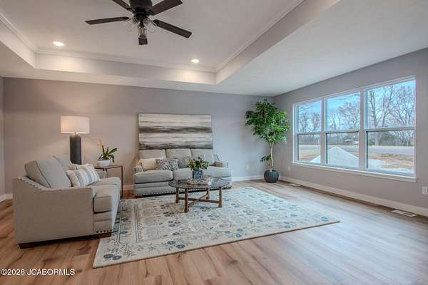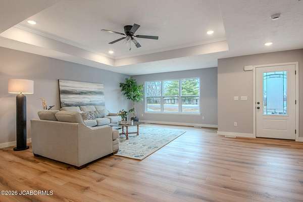 Set on 2+/- acres, this 3 bed, 2 bath home offers the perfect combination of open living space and modern finishes. The thoughtfully designed floor plan creates an effortless connection between the living room and kitchen, making the home feel spacious and welcoming from the moment you step inside. The living room is highlighted by a tray ceiling and abundant natural light, creating an airy, elevated feel. Just beyond, the kitchen stands out with an oversized island, granite countertops, abundant wood cabinetry, and stainless steel appliances - a space designed to be both beautiful and functional. The primary suite provides a comfortable retreat with a walk-in closet and private bath featuring dual vanities. Two additional bedrooms, a full bath, and laundry complete the living area. Step outside onto the deck overlooking the backyard and enjoy the peaceful setting with a cold iced tea. Modern design, practical layout, and space to breathe - all wrapped into one inviting home.