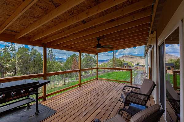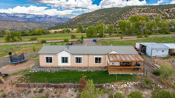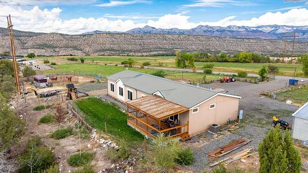 This beautiful home in Molina offers 1944 sq ft of living space and 4.38 irrigated acres. The spacious home has 4 bedrooms, 2 baths, living room and a family room. The kitchen has ample cabinet space, a breakfast bar, and a gas stove. Central air conditioning is newly installed! There are stunning views in every direction and a new covered deck to enjoy outdoor living. New fencing and an automatic gate. Everything you need is included: Pasture, riding corral, RV Parking, fruit trees, carport with shed, and abundant recreation right out your back door. Tractor and implements are negotiable with an acceptable offer.