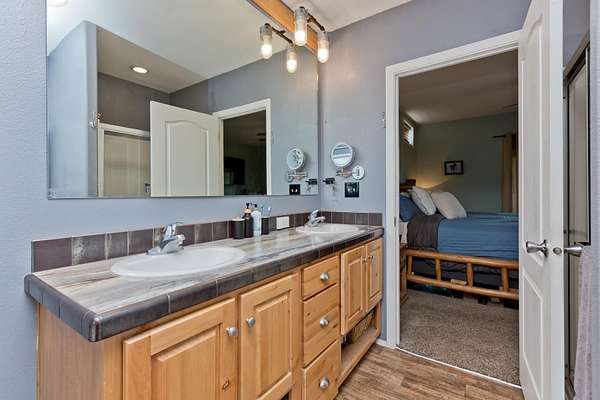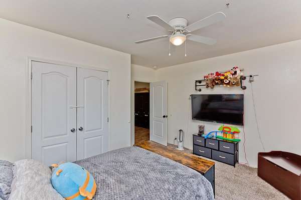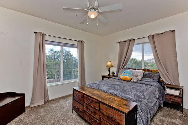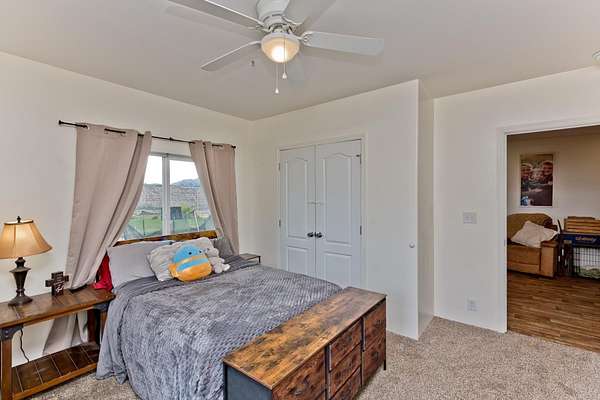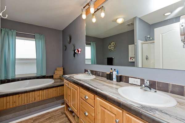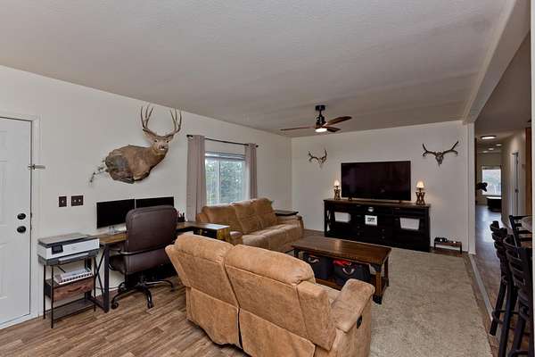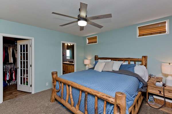 - Ceiling Fans, Jetted Tub, Kitchen Dining Combo, Laminate Counters, Main Level Primary, Pantry, Walk In Closets, Walk In Shower, Window Treatments
