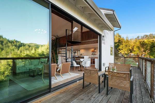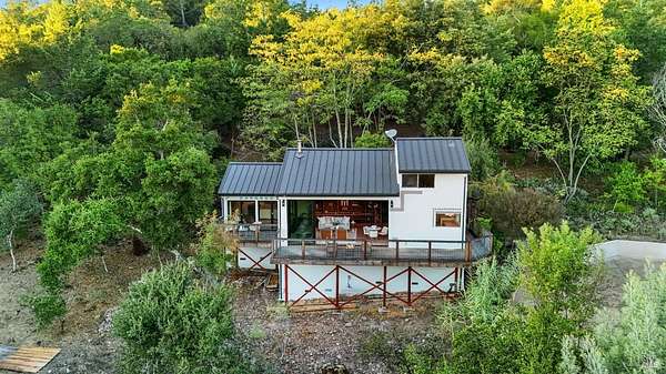 Welcome to 12303 Margie Lane, a tranquil Sonoma Valley retreat with possible short term rental opportunity! Perfectly positioned between the world-renowned wine regions of Sonoma and Napa, this distinctive Glen Ellen hideaway blends rustic charm with modern comfort. Set on 1.8 serene acres, the 1 bedroom, 1.5 bath home offers 1,190 +/- square feet of thoughtfully designed living space, ideal as a full-time residence or a peaceful getaway from city life. A brand new stamped-concrete driveway welcomes you home, leading to a setting surrounded by nature and privacy. Inside, a dramatic sliding glass wall opens to sweeping views, creating a seamless indoor-outdoor connection perfect for morning coffee or evenings spent under the stars. The home's open layout features a striking metal circular staircase ascending to a cozy loft, ideal for an artist's nook, home office, or additional sleeping area. Recent upgrades include a new steel roof, new HVAC system, tankless water heater, new owned propane tank and lines, and a new water storage tank-ensuring comfort and efficiency year-round. Whether you're seeking a serene primary residence, a weekend retreat, a short term rental investment, or an inspiring creative escape, this one-of-a-kind property in the heart of Sonoma Valley invites you to slow down, breathe, and enjoy the beauty that surrounds you.