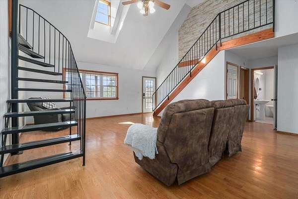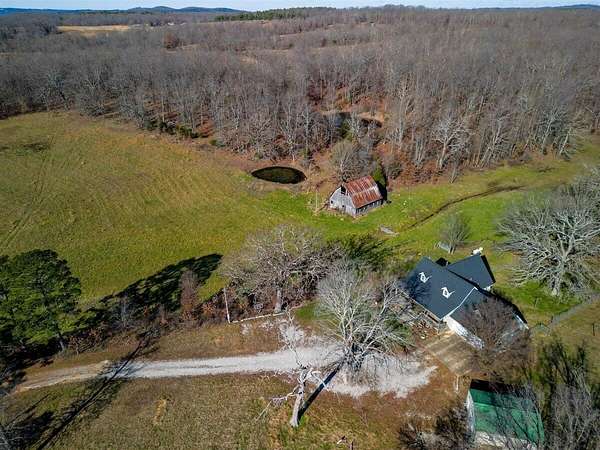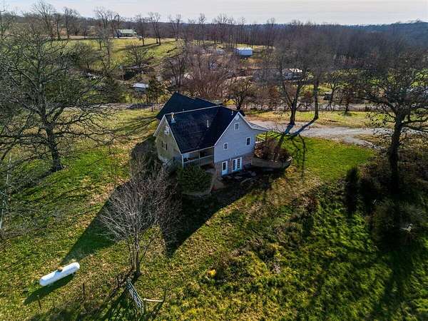 Country home with acreage for sale in the Ozarks. Located off paved road, yet not too far from town is where you will find this property offering a home on almost 20 ac perfect for cattle or horses. Land is fenced and cross fenced with a mixture of open and woods including an older hay barn and 2 ponds. There is abundant wildlife everywhere you look with amazing opportunity for hunting! Home with covered front porch offers so much space including an upper and lower level with an attached 2 car garage and detached one car shop/garage. Entering the home you can't help but notice the vaulted ceilings, cozy fireplace, and plenty of natural light streaming in through the skylight in your dormer window. The kitchen with lots of space includes an island, double oven, stainless steel fridge and a pellet stove for additional warmth. Both bedrooms upstairs include an ensuite bathroom with the master suite including a walk in closet as well. There are washer/dryer hookups on both the main and upstairs levels. The walkout basement has French doors for easy access that could also be used as a separate entrance. The second living area in basement would make a great place for a home office, workout area, hobby room, homeschooling and MORE! There are NO RESTRICTIONS!!! Do what you want with YOUR land! Close to area streams, rivers ,lakes, National Forest and trails. Don't miss the opportunity to live in the Ozarks!