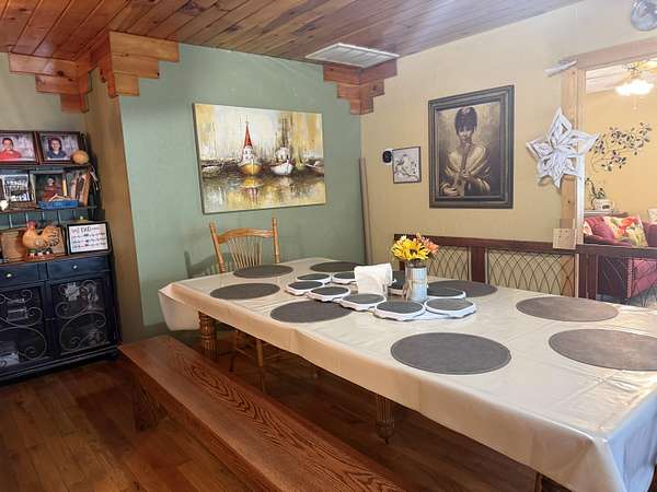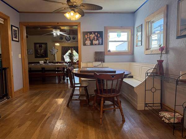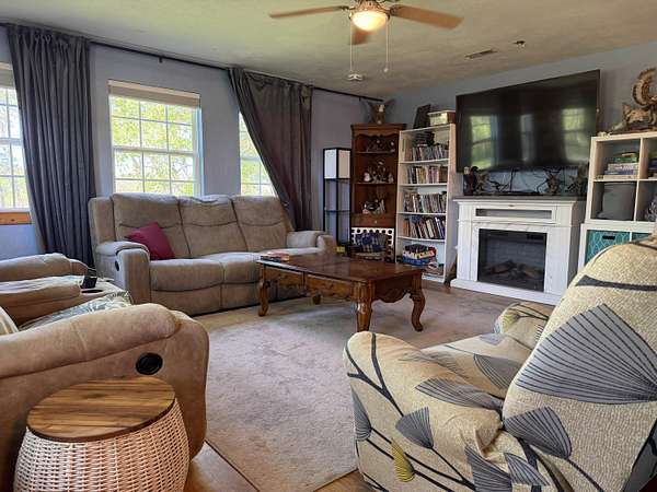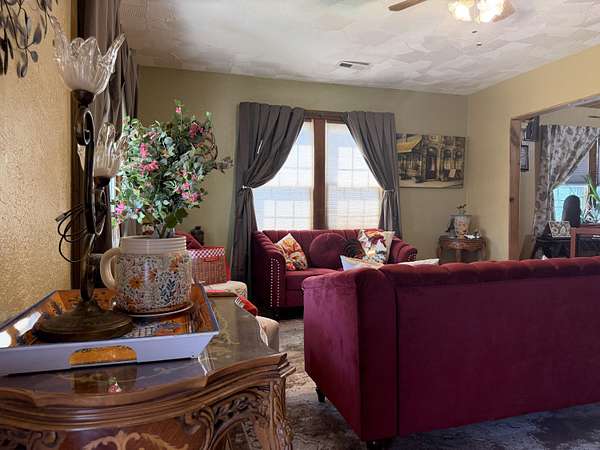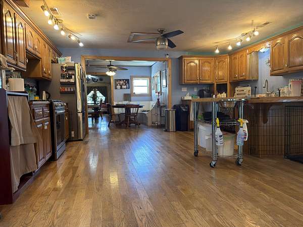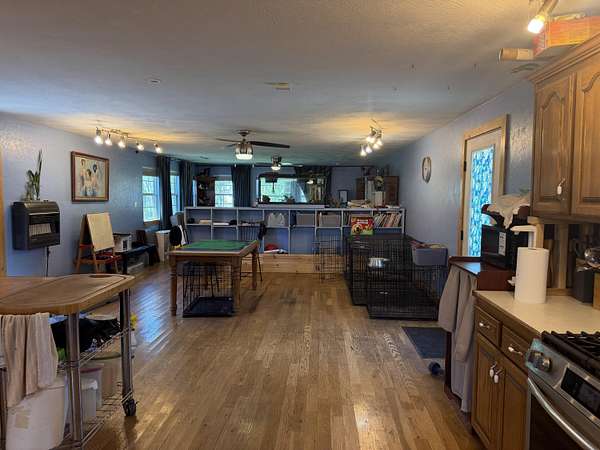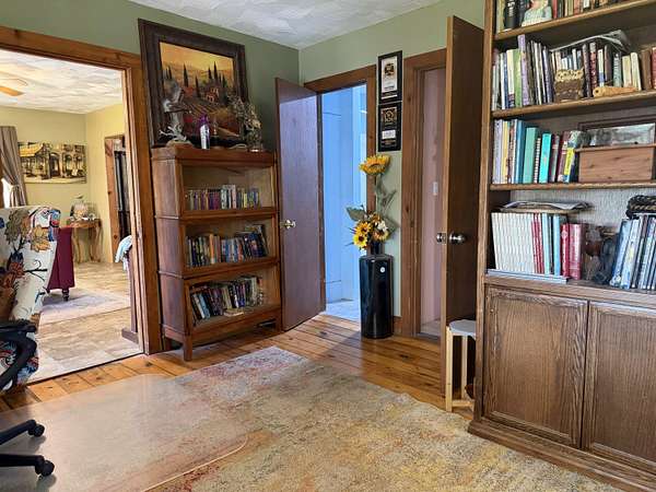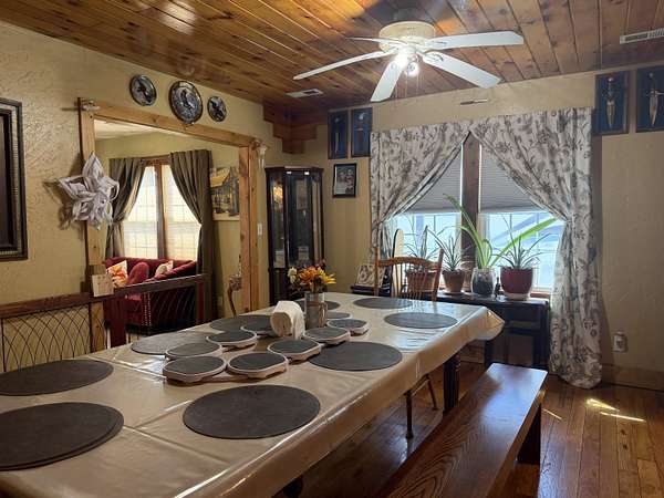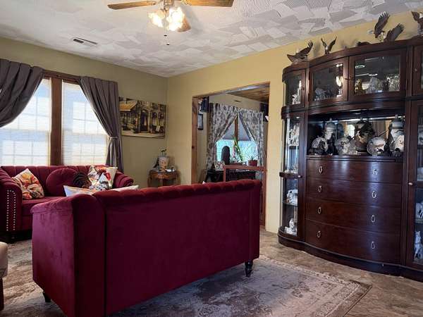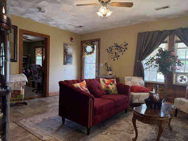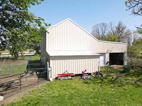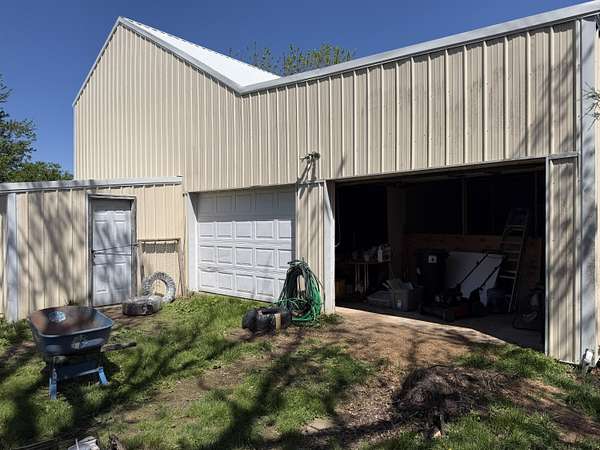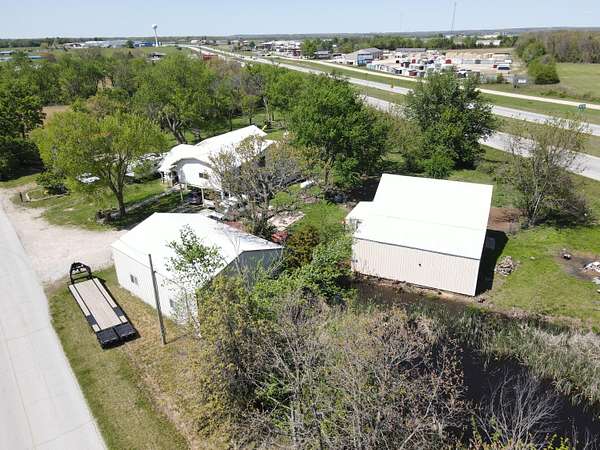 Versatile 2-acre property with prime US 60 frontage--ideal for a homestead, home business, or both! Excellent visibility for signage and no city zoning restrictions offer endless possibilities.Level land is perfect for a hobby farm with room for gardens, fruit trees, and animals. Barn includes a well-designed chicken coop (heated with wood-burning stove) plus storage/workshop space. A 1,200 sq ft metal shop provides a great setup for a business or hobbies.Spacious 4,179 sq ft home features an open kitchen/living/dining area, formal living room, and office/study or music room. Main level includes 3 bedrooms plus 1 non-conforming, including a primary suite with ensuite bath. Upstairs offers 3 additional bedrooms or could be converted back to one large open space--ideal for an apartment or studio.Also included is a new 12x40' modular building with metal roof, partially finished and comes with building supplies--ready for your vision.Enjoy your own pond and the freedom to live, work, and create in one unique property!