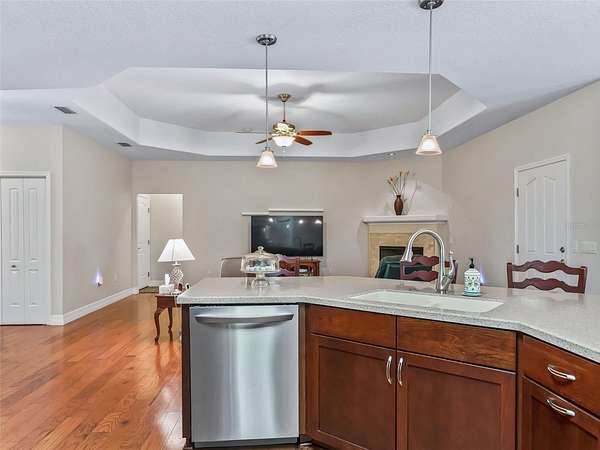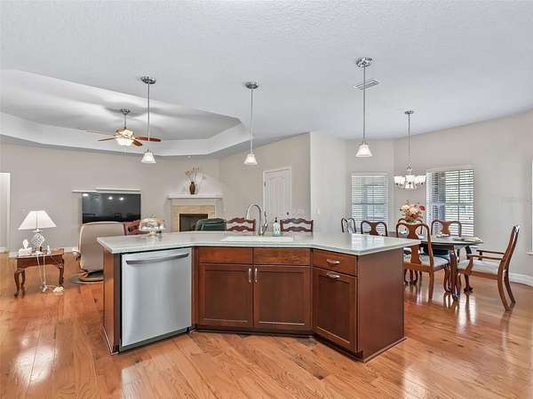- Cathedral Ceiling(s), Ceiling Fans(s), Central Vaccum, Coffered Ceiling(s), Crown Molding, Eat-In Kitchen, High Ceilings, Kitchen/Family Room Combo, Open Floorplan, Solid Surface Counters, Solid Wood Cabinets, Split Bedroom, Stone Counters, Tray Ceiling(s), Vaulted Ceiling(s), Walk-In Closet(s), Window Treatments