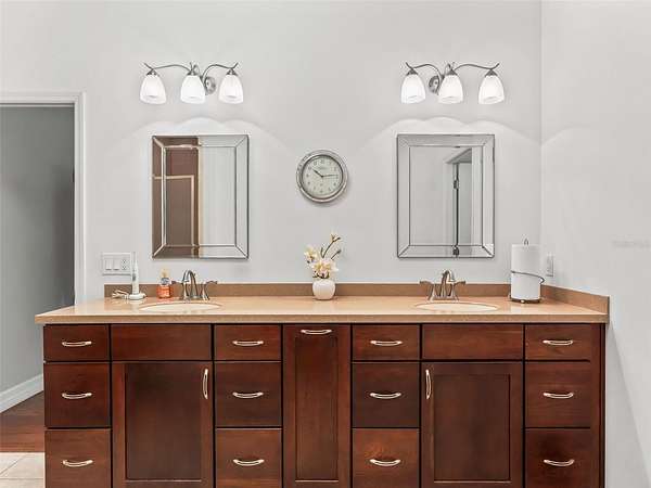 The primary suite delivers space and comfort with a large walk-in closet, double sinks, a private water closet, and a walk-in shower. The 2-car garage provides ample workspace and additional storage as well.