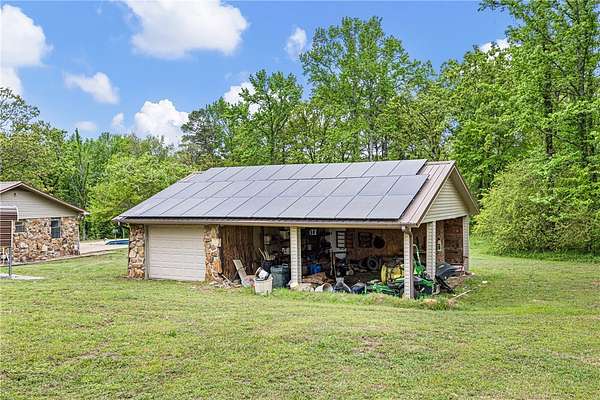 4 bed, 3 bath country home in Pope County, AR with 4,000+ sq ft - including a 925 sq ft finished basement - on +/- 4.52 acres near Atkins, just minutes from Russellville and I-40. Recently remodeled and move-in ready with granite countertops, hardwood floors, and a bright sunroom overlooking the backyard. Seller-owned solar panels reduce utility costs and a whole-home Generac Guardian generator ensures reliable backup power. Enjoy a large in-ground saltwater pool with a brand-new liner, access to a stocked fishing pond, and open acreage for recreation, gardening, or small livestock. Garage/shop and carport provide ample storage for equipment and hobbies. Is this home near Russellville? Yes - with quick and convenient I-40 access. Are the solar panels owned? Yes, full ownership transfers to the buyer at closing with no lease obligations. Is the pool move-in ready? Yes, featuring a brand-new liner. Hobby farm or private retreat potential? Absolutely - the acreage, stocked pond, and outbuildings make it possible.
