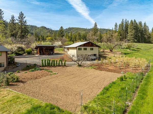Designed for sustainable living, the property is currently operated as a market farm. Approximately 16.4 acres are in pasture, 2.7 acres are dedicated to orchards, and there is an additional 6,000-square-foot garden area for vegetable production. Permanent plantings include a wide variety of apples, pears, peaches, nectarines, plums, berries, nuts, and specialty fruits. The property is equipped with a licensed ODA kitchen, a walk-in cooler, root cellar, and more, creating a fully functional foundation for a variety of opportunities from homesteading to farm-to table.