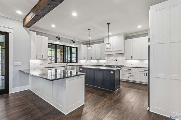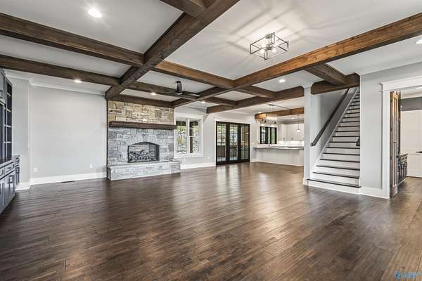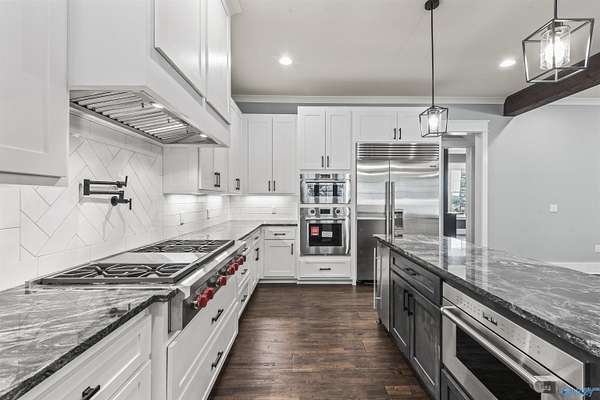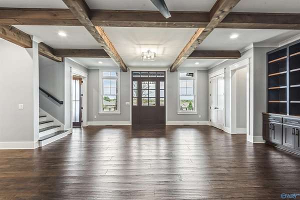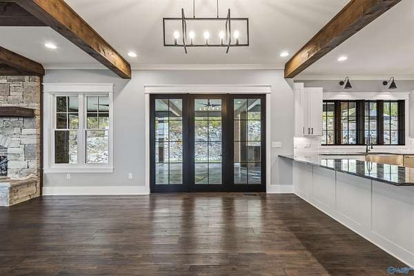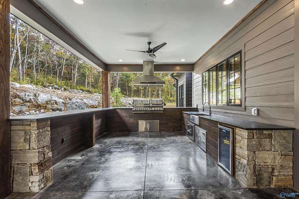 Don't miss this exclusive NEW custom home on almost 6 acres in South Huntsville! This one of a kind home is just 5 minutes from Redstone Arsenal and less than 10 minutes from Grissom High School without even hitting the parkway traffic! Large outdoor kitchen with double grill, outdoor bar seating and gorgeous rock fireplace. This fully custom home also includes: Indoor and outdoor fireplaces, Wolf appliances and Subzero refrigerator, Nugget ice maker, Gas tankless water heater, 3 car garage with beltless/chainless doors, WIFI enabled opener, Generator Ready, 6inch stud framing, Spray foam insulation, Large bonus room with separate staircase access, and a walking trail from the backyard.