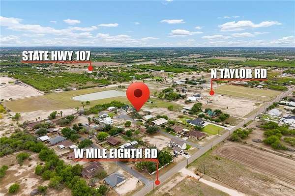 From 107 Go north on Ware Road, Turn west on Mile 8, Pass Bentsen Rd to Lakeview Drive. Entrance to the property is at the end of the cul-de-sac.