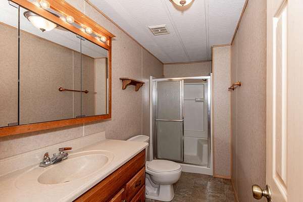 - Ceiling Fan(s), Fiberglass Stall Shower, Laminate Counters, Open Floorplan, Solid Surface Counters