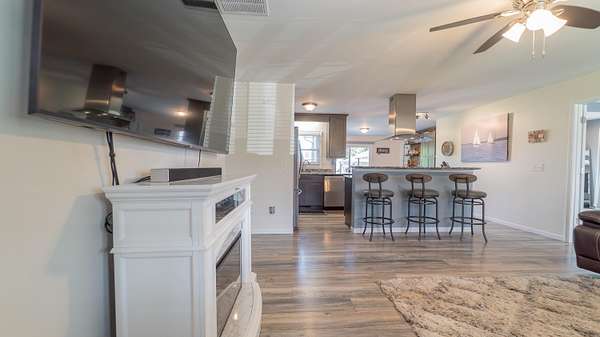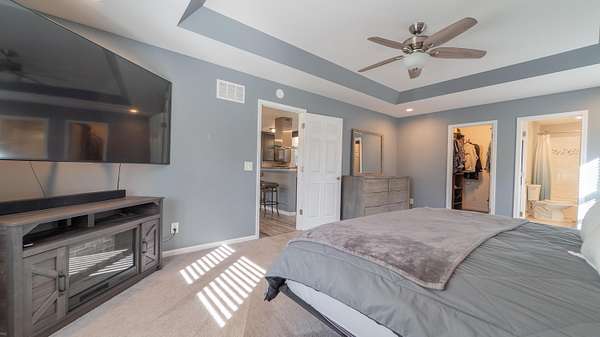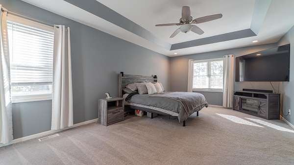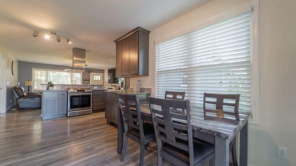 - Ceiling Fan(s), Country Kitchen, Double Vanity, Eat-In Kitchen, Granite Counters, Kitchen Island, Open Floorplan, Recessed Lighting, Soaking Tub, Stone Counters, Tray Ceiling(s)