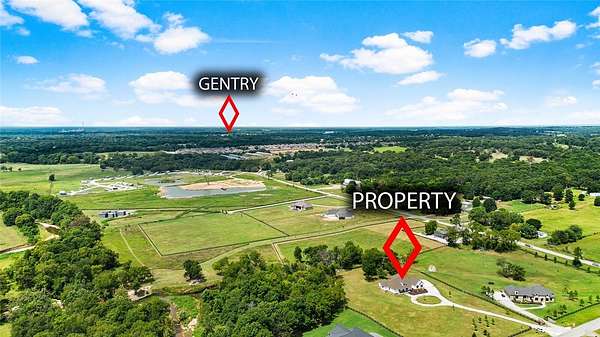 From Hwy 59 in Gentry turn East on Hwy 12. Follow to Fairmount Rd. Turn South on Fairmount Rd to house on West side of Rd - 2nd house on the right - pindrop is available.