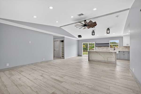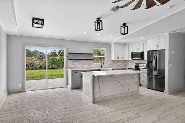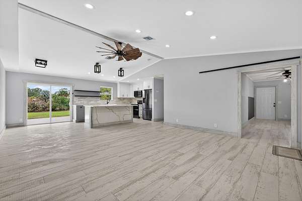 Experience the perfect blend of modern upgrades and peaceful country living in this completely remodeled home located in the highly desirable community of The Acreage. This beautiful property features 3 bedrooms, 2 bathrooms plus a flex room offering living space for an office, gym, or guest area. A spacious kitchen with new stainless steel appliances, quartz countertops, and shaker cabinetry with large island for entertaining. Situated on 1.60 acres on a paved road, the property includes an outdoor pergola, firepit, and playground perfect for entertaining and enjoying the Florida lifestyle with plenty of room for a pool, toys, animals, or expansion. Don't miss the opportunity to own this move-in ready property and enjoy the freedom of the Acreage with no HOA!!!