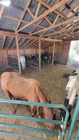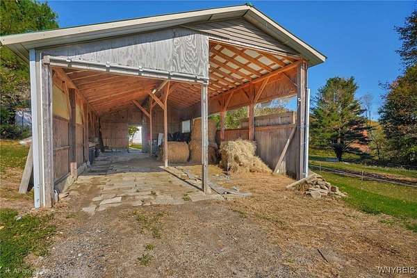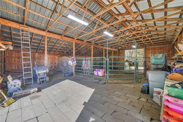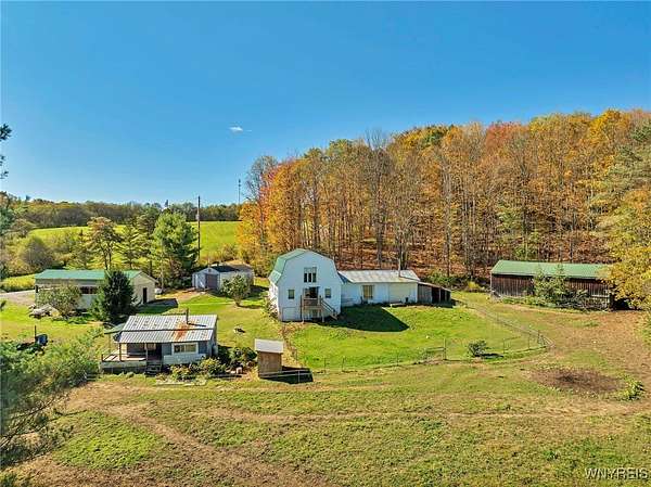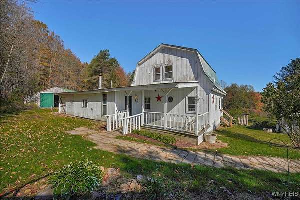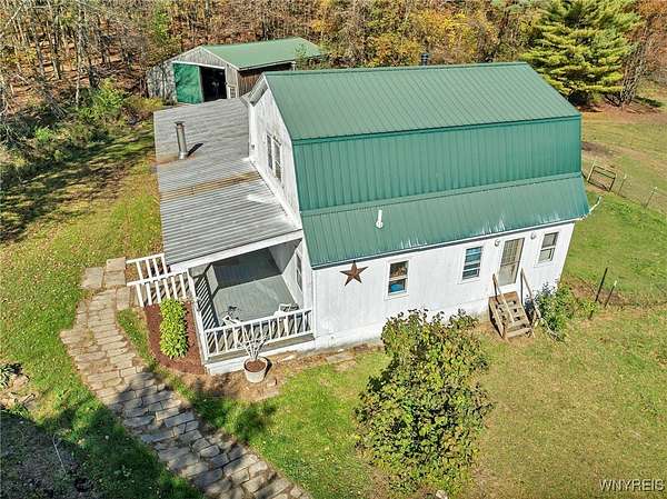 Perfect Hobby Farm alert! Welcome to the most adorable and affordable 4 BR, 1.5 bath home located on 2 acres of gently rolling hills with multiple outbuildings! Nestled on a hillside this property has so much to offer! Sunshine spills in from all angles in this bright 2 story home with newly remodeled kitchen and bathroom, huge 15x20 open concept LR with cathedral tongue and groove ceilings, joins to10x15 formal dining space w woodstove, perfect for all your entertaining needs! Sliding glass doors overlook the backyard pasture area and woods. Fully applianced kitchen w tons of oak cabinets for lots of storage also features new flooring backsplash and updated countertops. Giant 1st flr master BR is large enough for an office space or sitting area. Also boasts a wood stove for chilly nights and sliding door to your newly built private deck where you can enjoy morning coffee or an evening libation. The 2nd floor is home to 3 more bedrooms and a half bath with walk in attic space that could easily be converted to a large closet or storage room. Lrg 13x26 insulated utility/storage room off the back of the house houses the boiler and is great for storage or could be converted into a workshop/garage. Huge 22x42 Garage built is 2012, w water and electric (30amp), with 15' door can satisfy all your storage needs! 36 x 48 Pole barn built in 1997 is currently being used as a horse barn, could double as an amazing shop. Steel roofs on house and all outbuildings. Bonus 14x24 w 6x12 addition, finished Amish shed with wrap around porch and seasonal water and electric can be used as the ultimate she shed, man cave, or in-law/guest quarters with some minimal sweat equity! Airbnb potential as well! Additional 12x16 goat house/chicken coop set up too! So much to offer this is one to see!