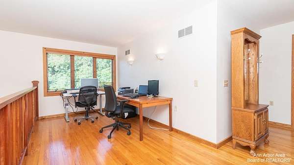 Custom Built Home on 20 Acres. Beautiful Hardwood floors Thru-out the Entire House. Entry w/lovely Ash & cherry Staircase. Kit w/9' Cherry Cabinets in Chefs Kit w/Dual Sinks, Custom Pantry, rolling island w/butcher block top, Lighted Glass Display uppers and tons of counterspace. Great Rm w/18' ceiling open to 2nd floor Loft. 1st FL Primary Suite w/wall of Closets, Private Door to Bath & Door wall to deck. 1st FL Laundry/Mud rm w/Matching Custom Kit. Cabinets, side exterior door & shower (Perfect for Dog bath) 2nd Floor Open Loft-Great for the Home office/family rm/Home Gym. 2 Bdrms & Full Bath Upstairs. Large Anderson Windows Thru-out w/amazing views from every room. Wide L.L. Staircase down to 1 bdrm apartment/In-Law Suite w/a Large Bdrm (fits a King Bed) full bath. New Roof on Garage/Barn. GeoThermal Heat. Solar array facilitates net zero utility bills. New Driveway : Recycled Asphalt.